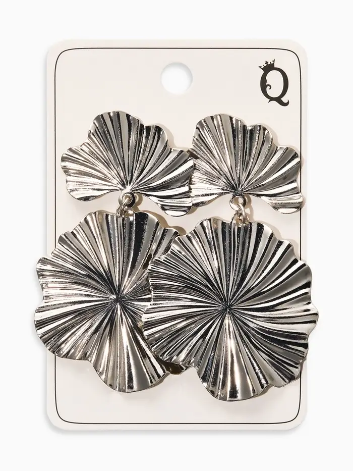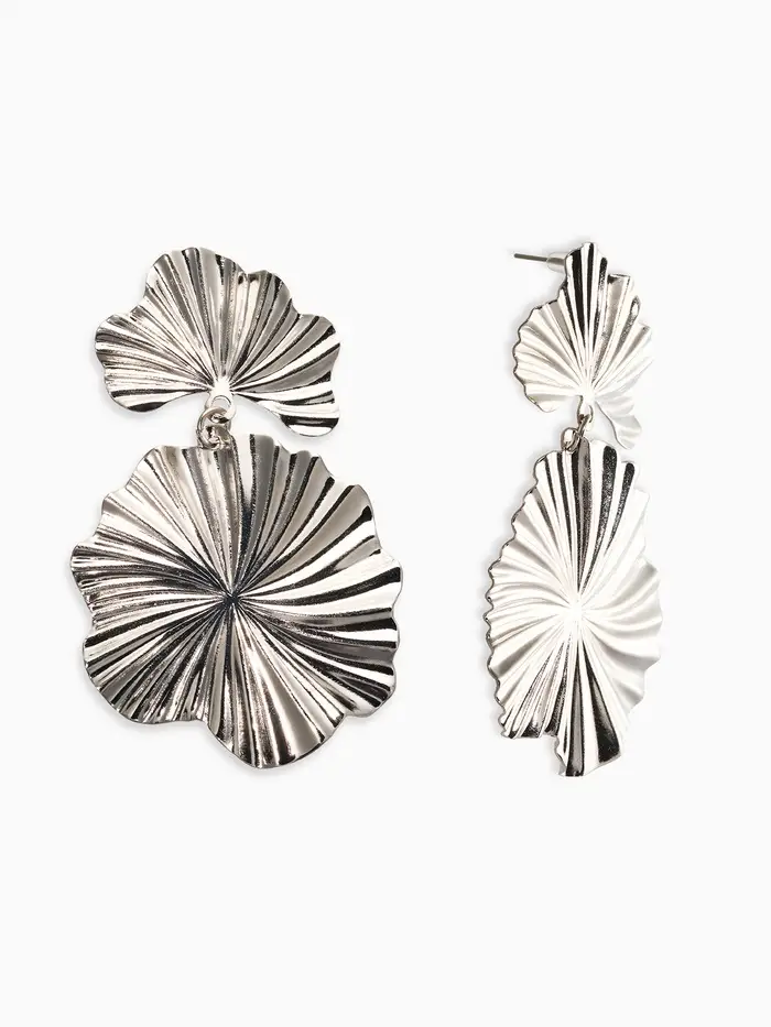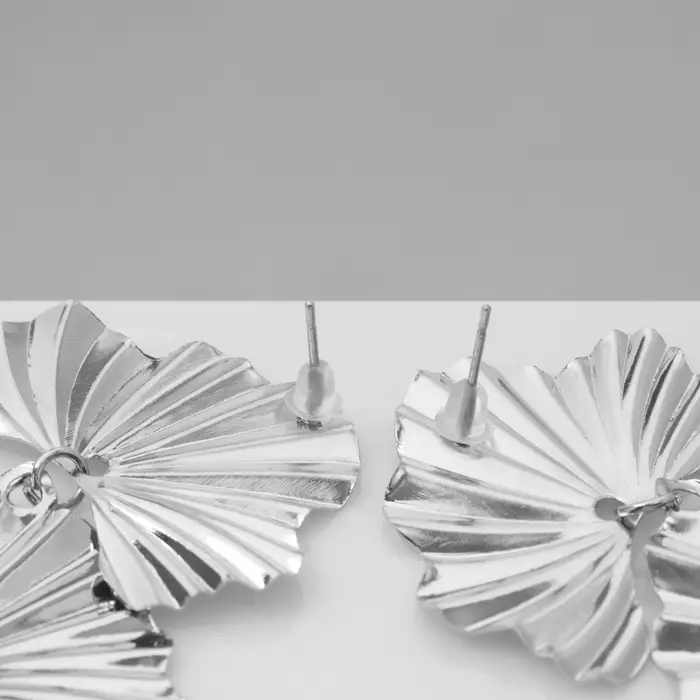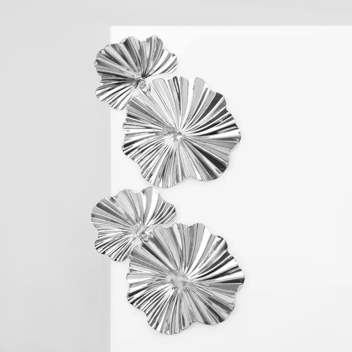 Серьги металл «Атмосфера» сжатые цветы, цвет серебро