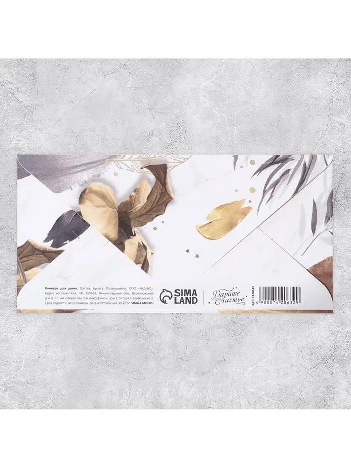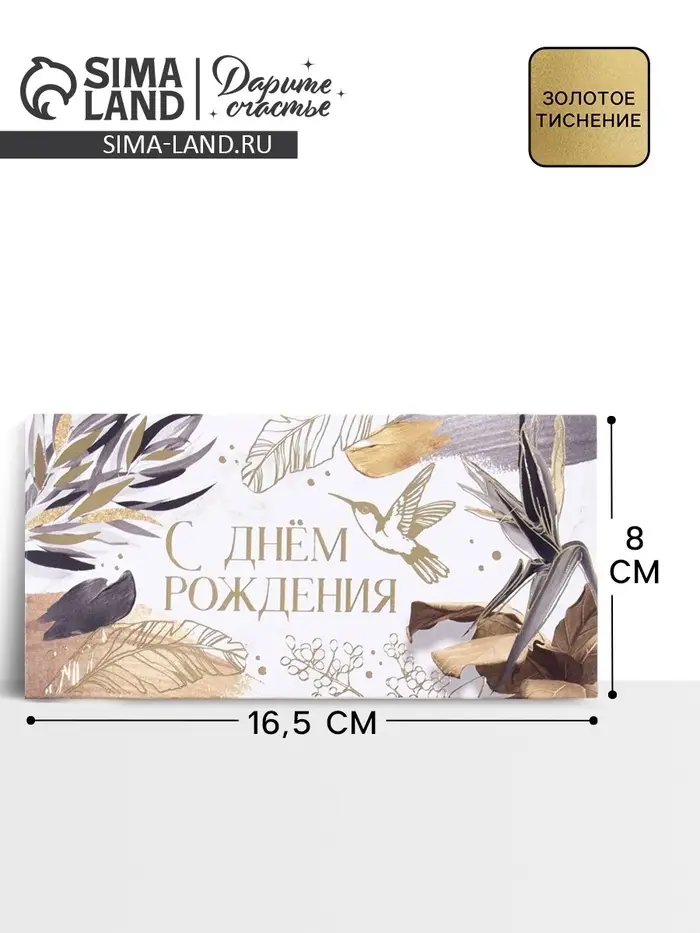 Конверт для денег «С Днем Рождения», тиснение, 16.5×8 см
