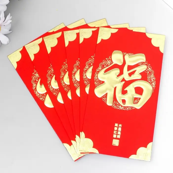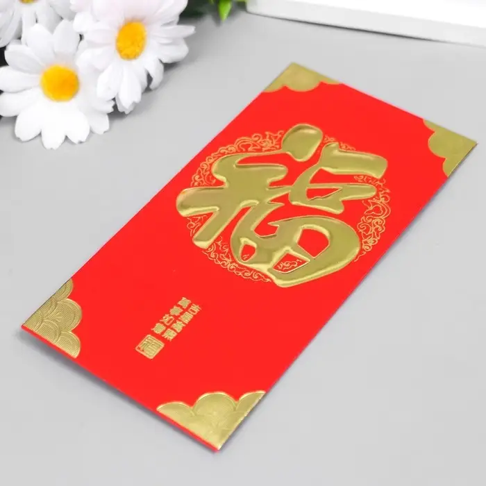 Конверт денежный бумага "Счастье" набор 6 шт красный с золотом 9х17 см