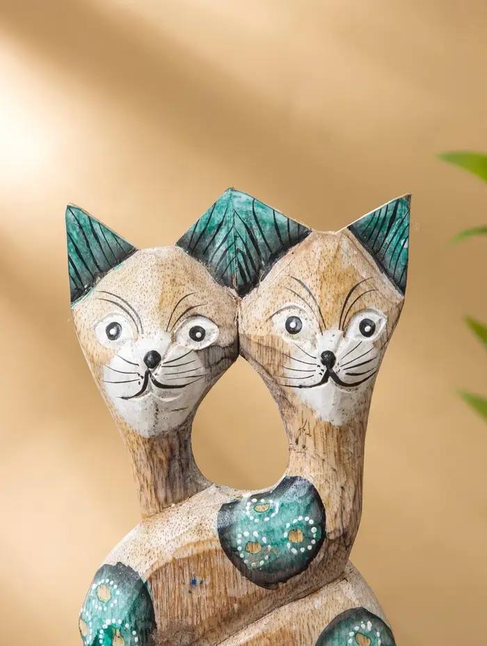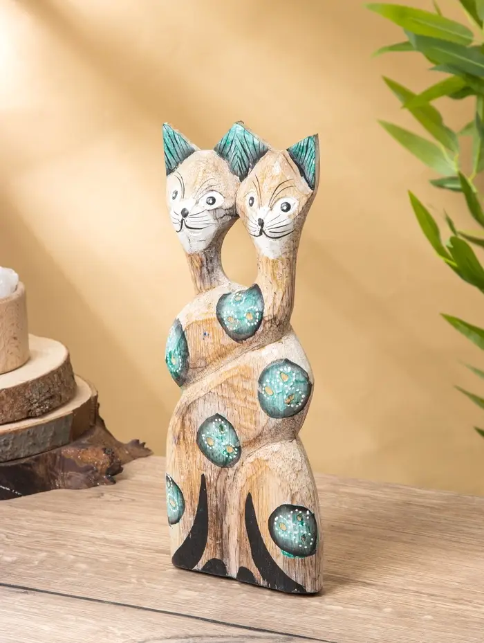 Сувенир интерьерный "Сиамские кошечки" 12х3х30 см, дерево, цв. зелёный