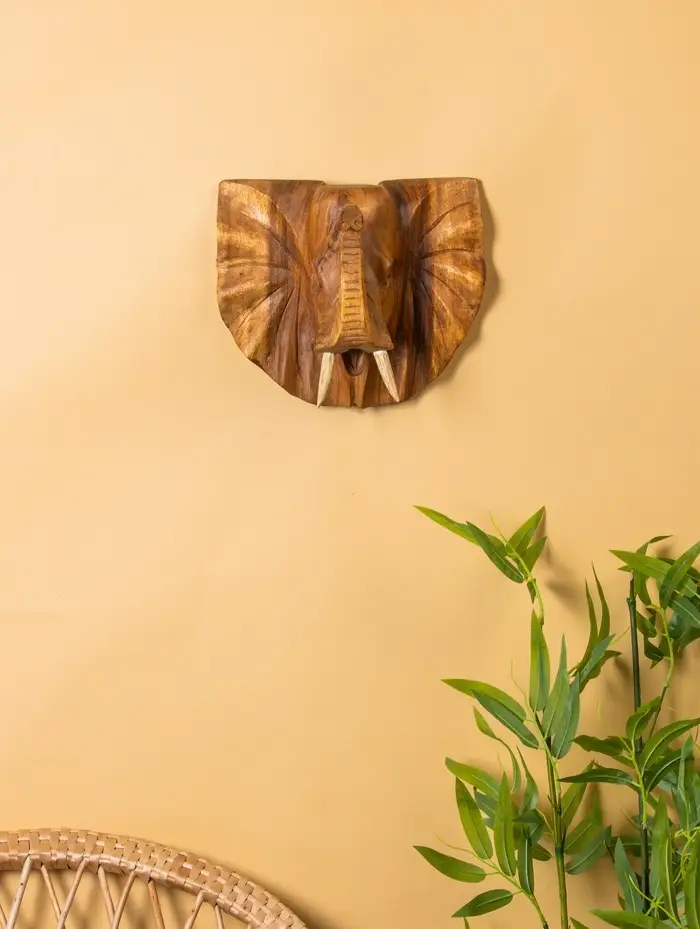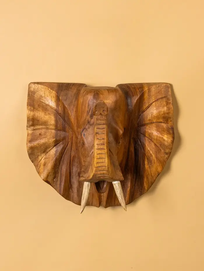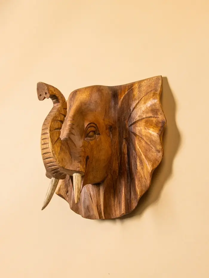 Панно «Голова слона», 32×15×22 см, дерево Суар, бежевое
