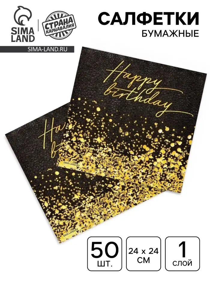 Салфетки бумажные однослойные «Happy Birthday», 24х24 см, 50 шт
