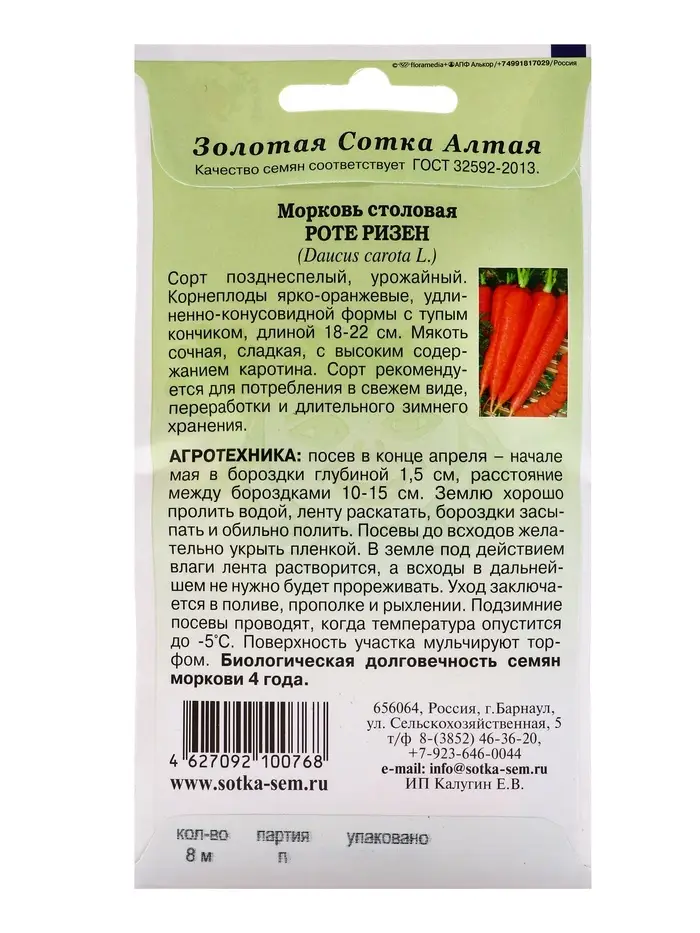 Семена Морковь на ленте Роте Ризен /Сотка/ 8м/ познесп. 18-22см/*240