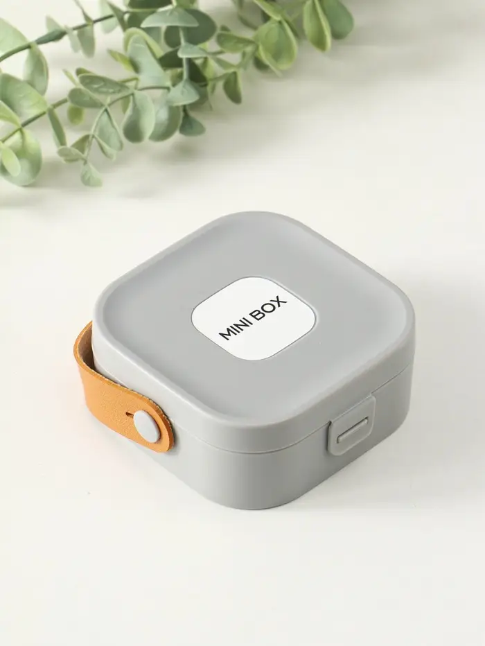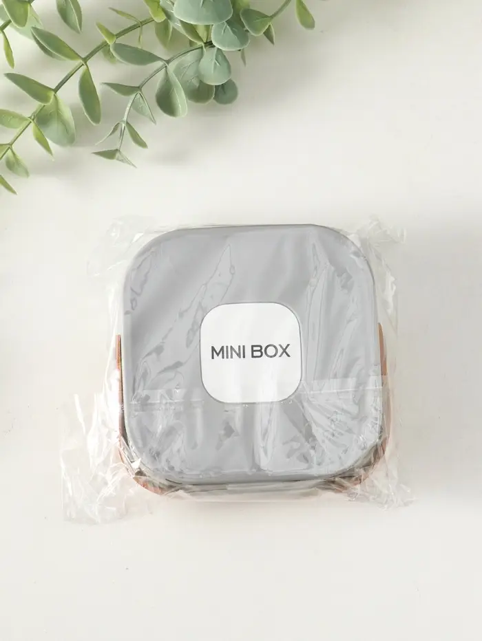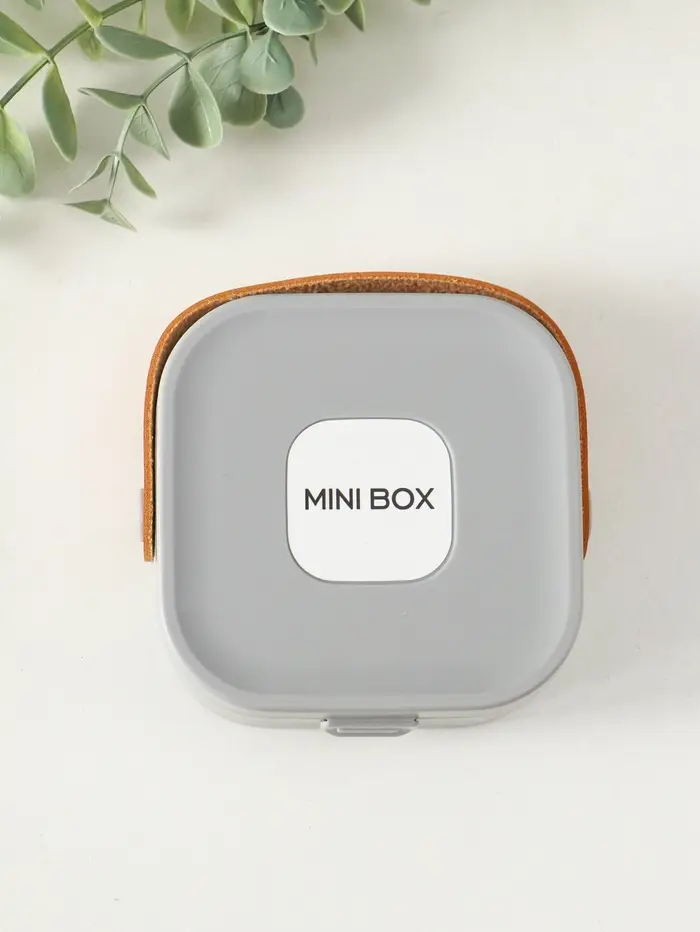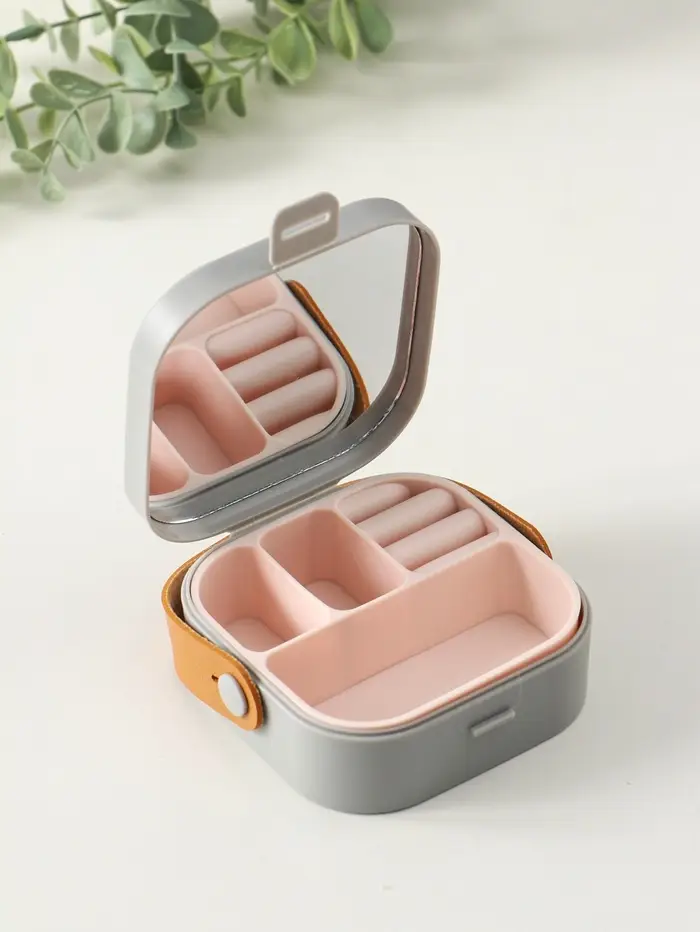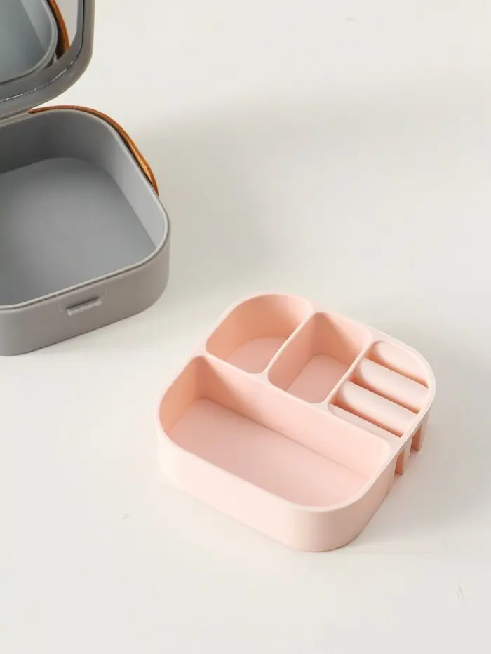 Шкатулка пластик для украшений с зеркалом, с ручкой 3 ячейки, 3 полосы, серый 9х9х3,8 см