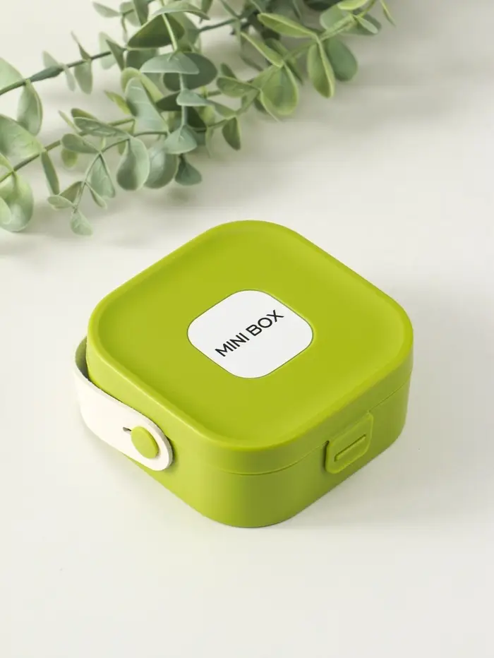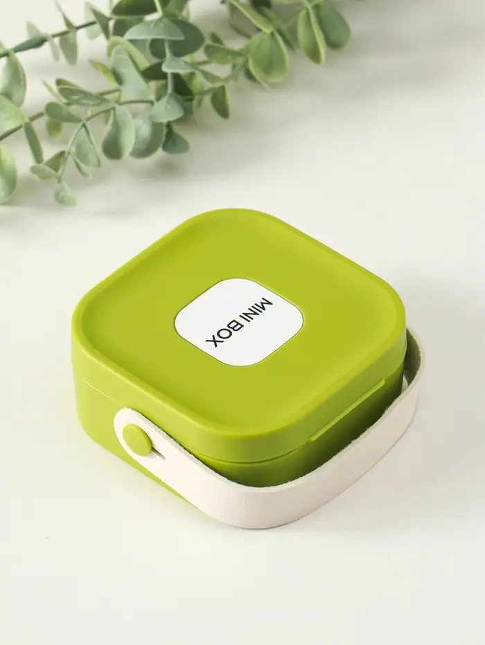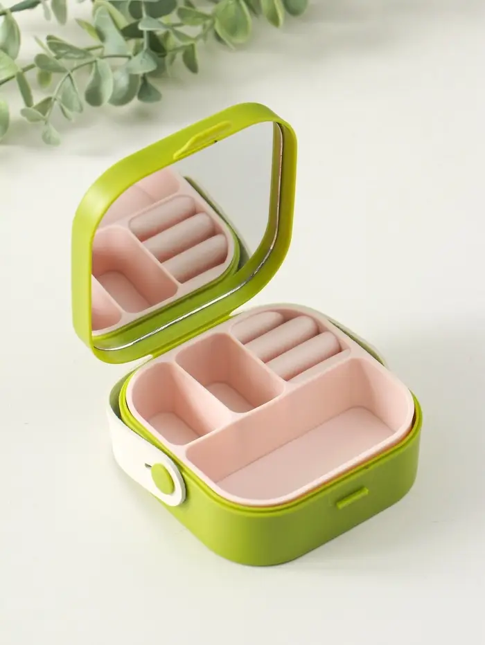 Шкатулка пластик для украшений с зеркалом, с ручкой 3 ячейки, 3 полосы, зелёны 9х9х3,8 см
