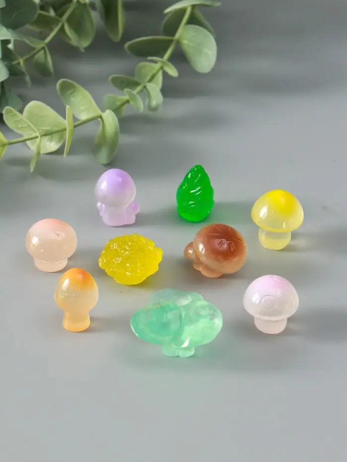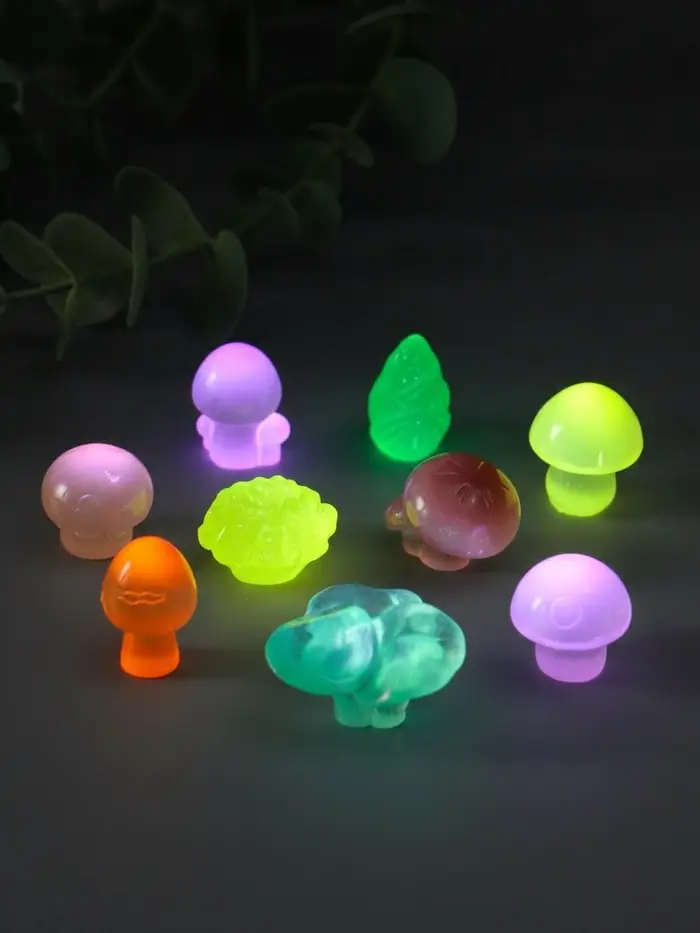 Сувенир эпоксидная смола флюоресцентный "Грибочки" набор 9 шт 1х2,4 см