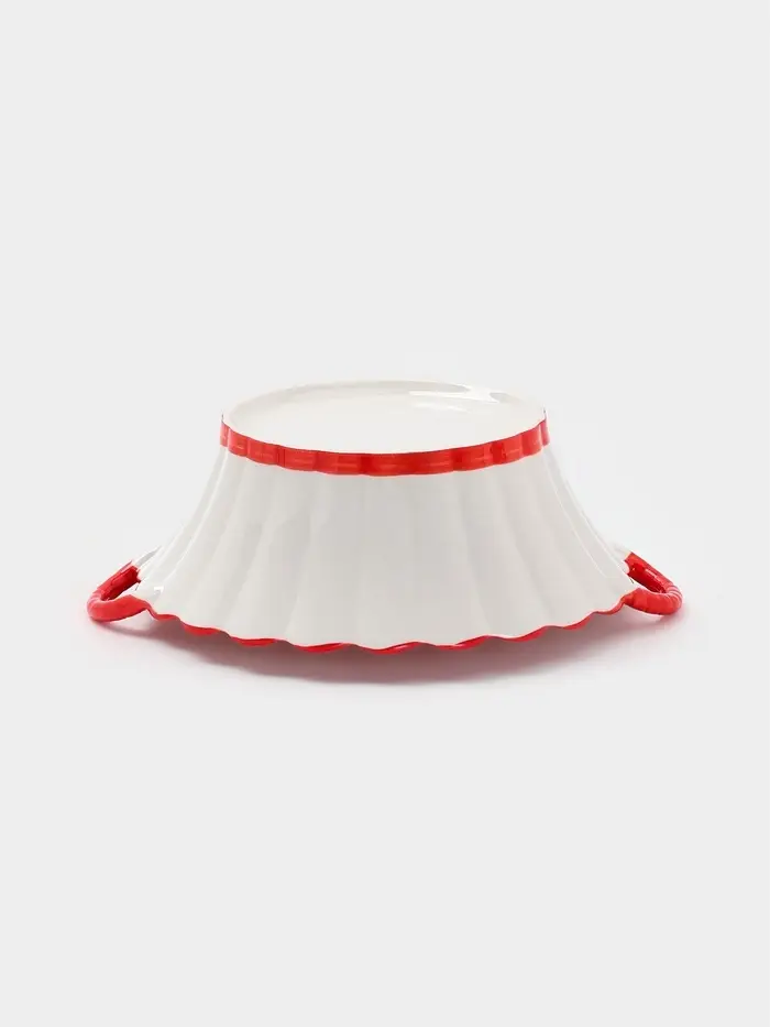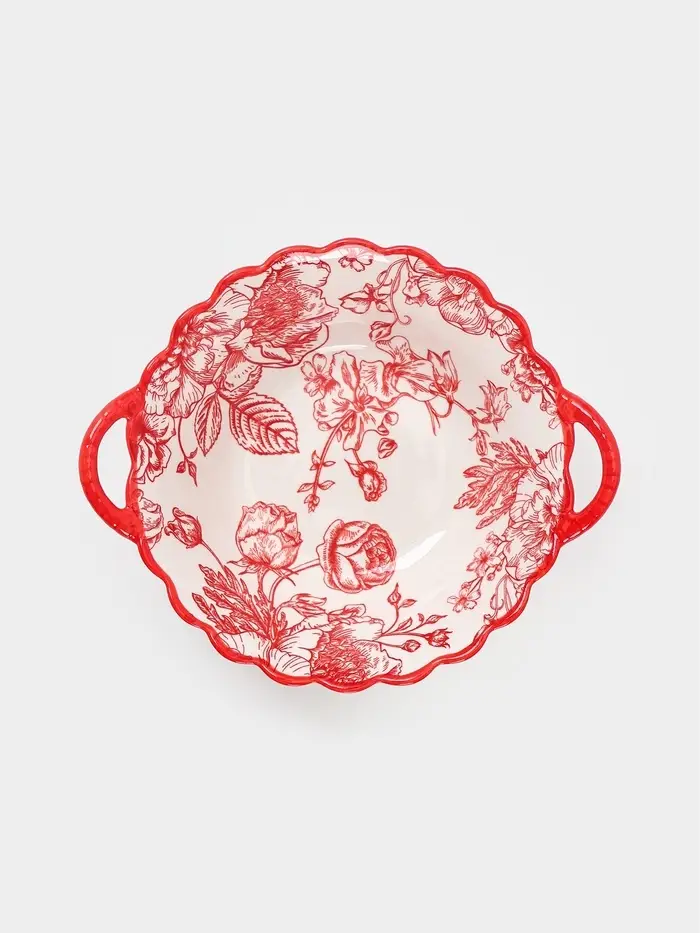 Бульонница с ручками Botanica, 20×17×6 см, фарфор, белая, красная