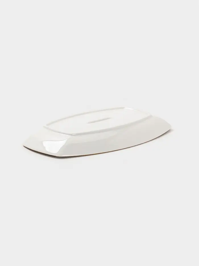 - Фигурный контур блюда подчёркивает индивидуальность сервировки, не нарушая функциональности.