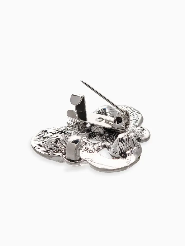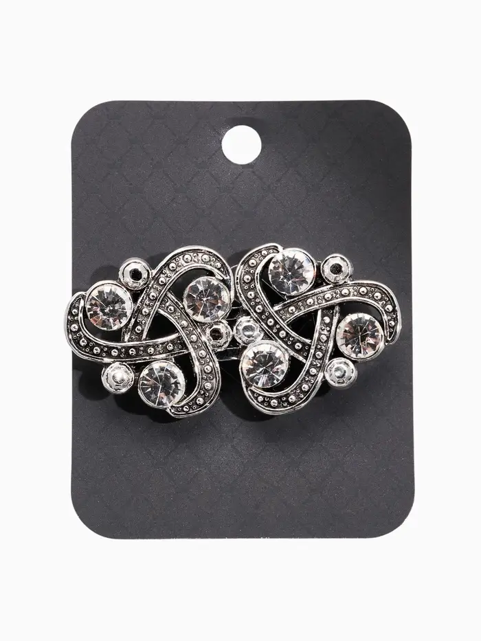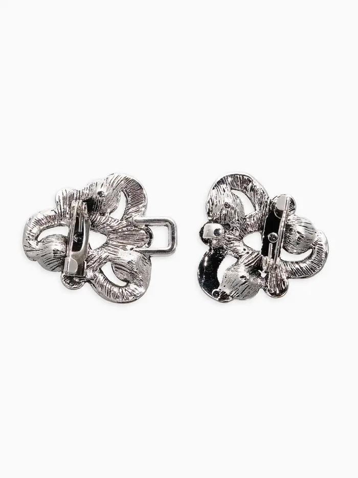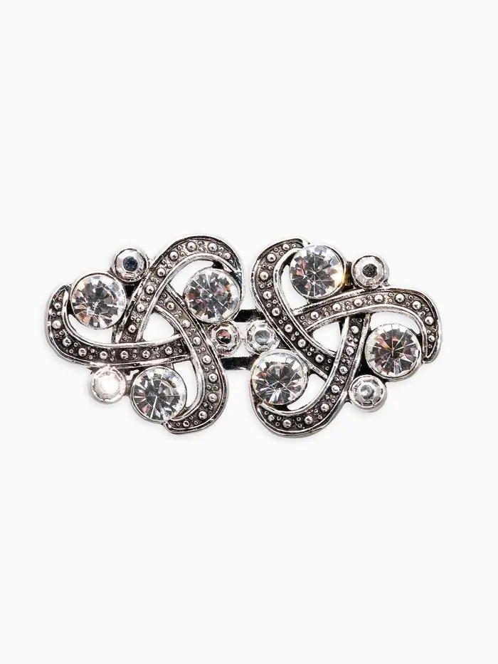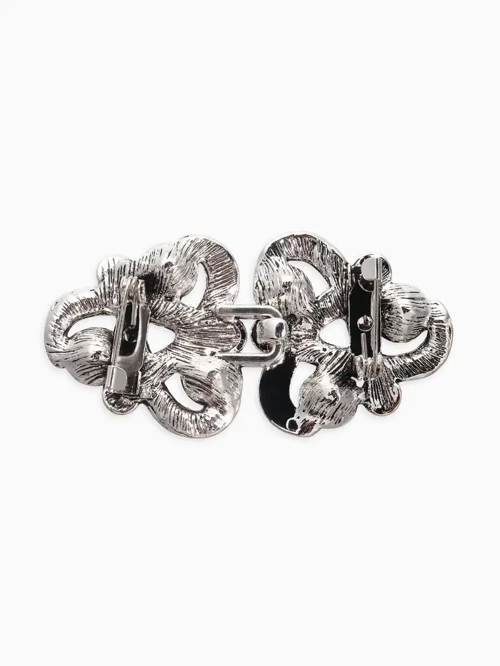 Зажим для кардигана "Ажур", узел, цвет белый в чернёном серебре