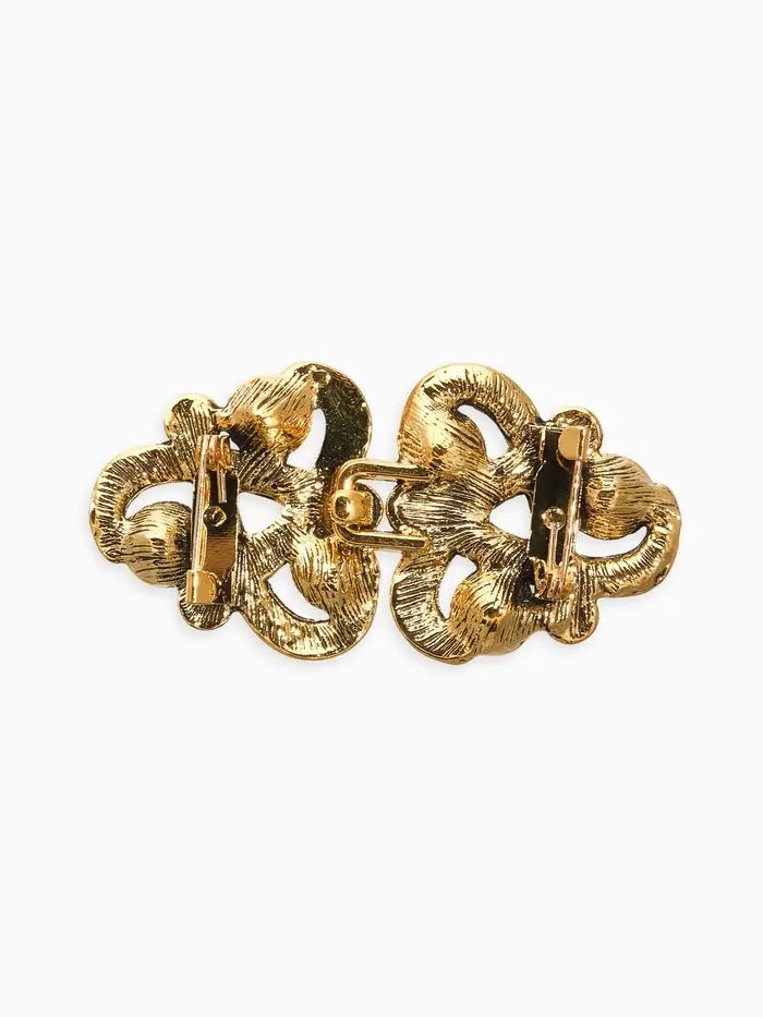 Зажим для кардигана "Ажур", узел, цвет белый в чернёном золоте