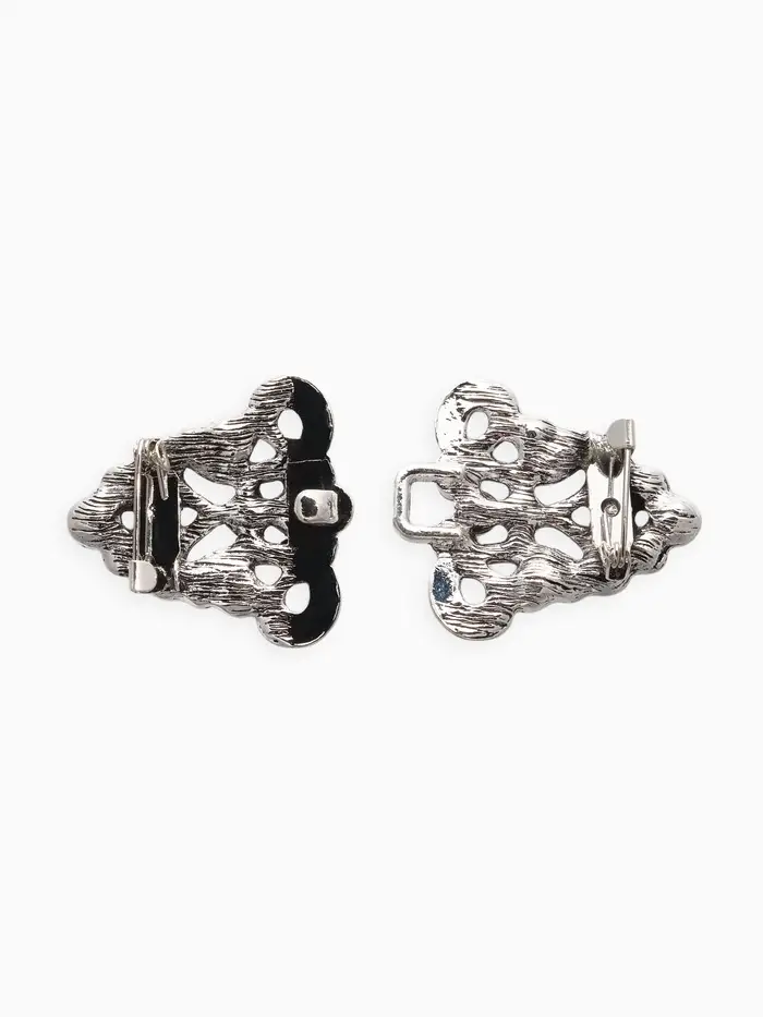 Зажим для кардигана "Ажур", бутоны, цвет светло-серый в черненом серебре