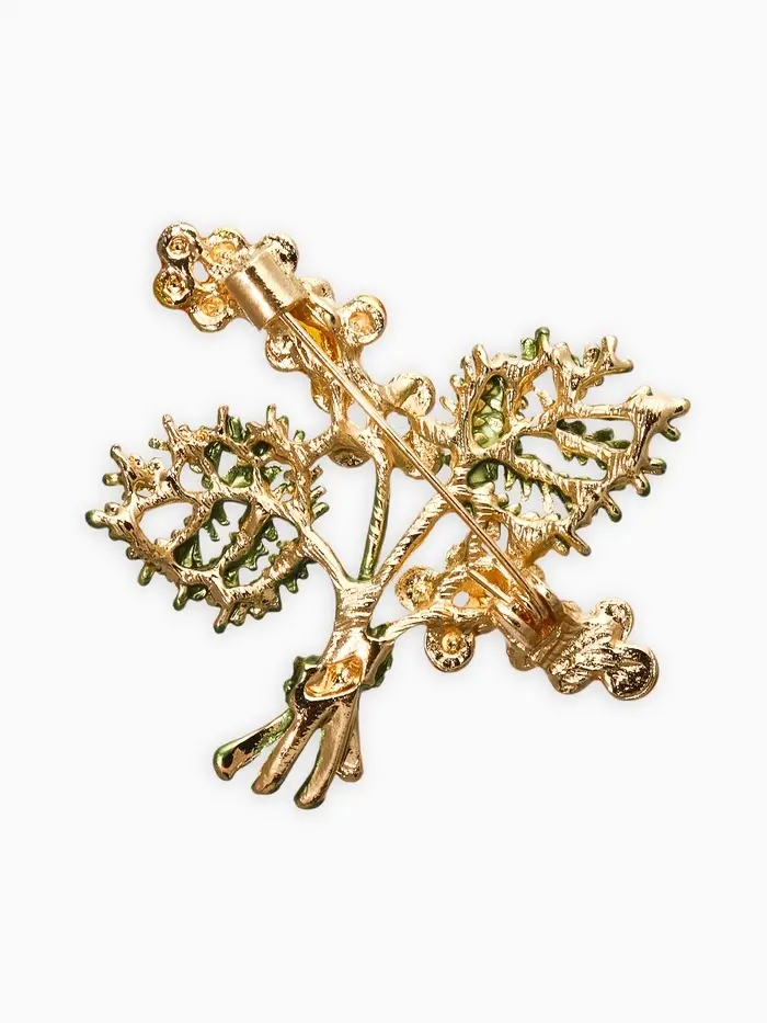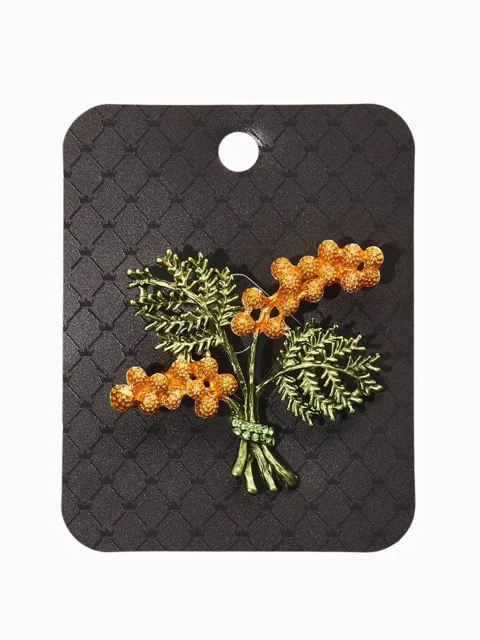 Брошь "Цветы Мимозы", цвет жёлто-зелёный в золоте