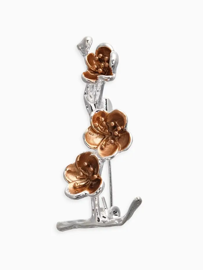 Эта изящная серебряная брошка в форме ветки сакуры станет вашим стильным аксессуаром, подчеркивающим элегантность образа. Изящная металлическая основа длиной всего 4 сантиметра исполнена в минималистичном стиле, позволяя аксессуару гармонично дополнять любой наряд. Элегантный серебристый оттенок фурнитуры подчеркивает природную красоту цветка, делая этот предмет незаменимым дополнением женского гардероба.