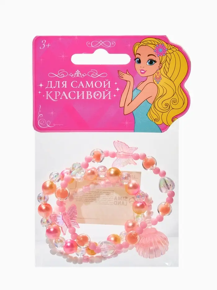 Браслет детский «Выбражулька», 3 шт. набор, жемчужина желаний, розовый