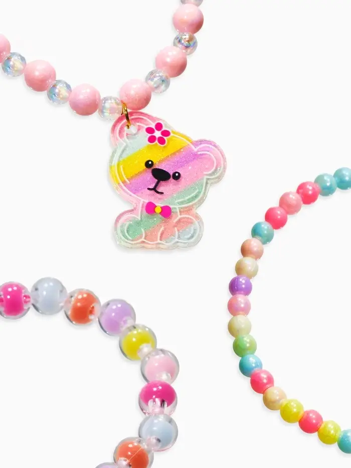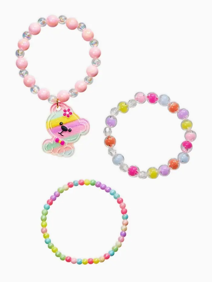 Браслет детский «Выбражулька», 3 шт. набор, мишка, бусины, цветной