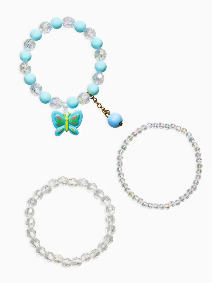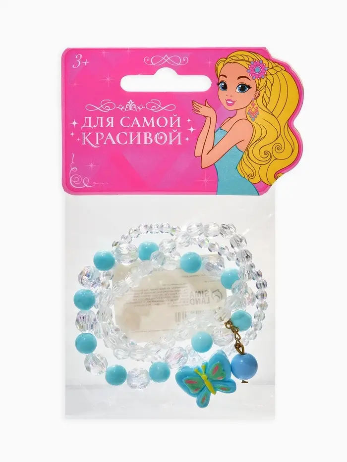 Браслет детский «Выбражулька», 3 шт. набор, бабочка с подвеской, бусины, цветной