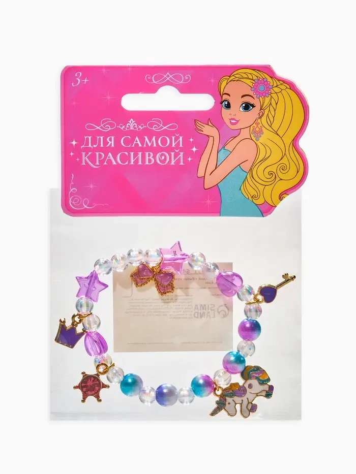 Браслет детский «Выбражулька», единорог, корона, бант, цветной