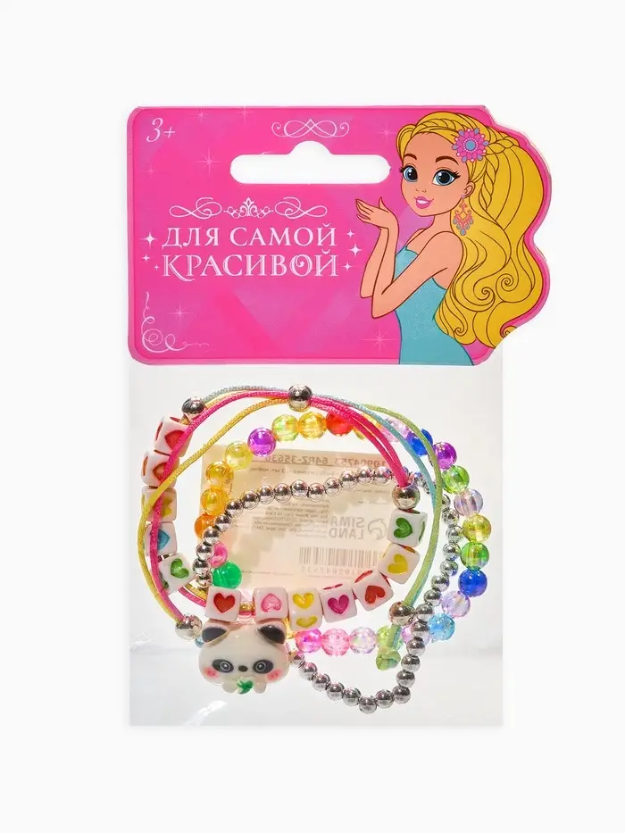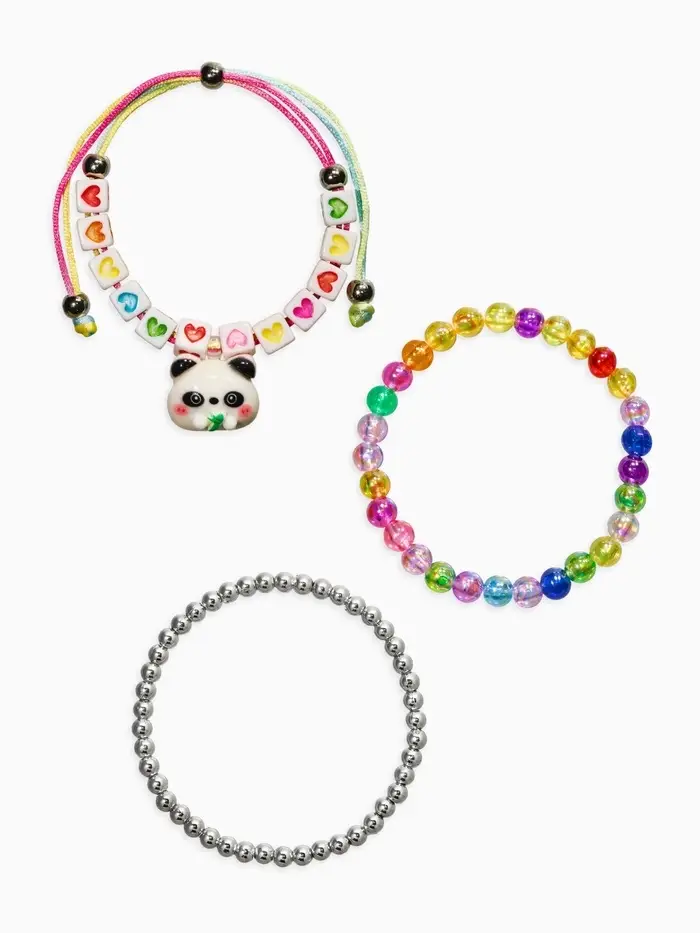 Браслет детский «Выбражулька», 3 шт. набор, панда ,бусины, цветной