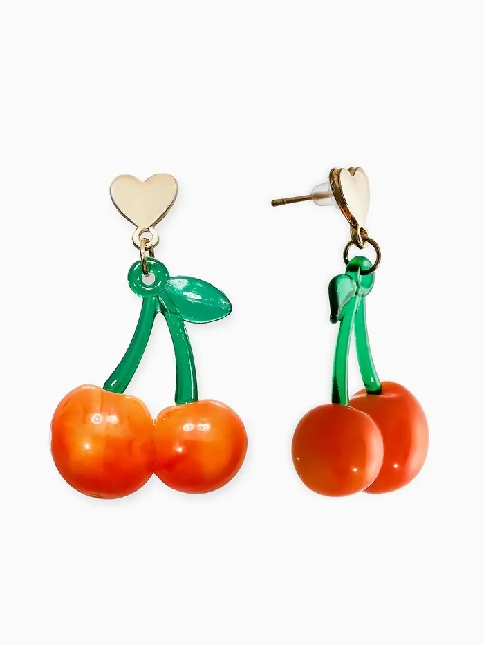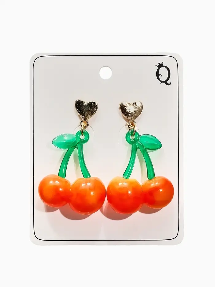 Серьги "Вишня" сердечки, цвет красно-жёлтый в золоте