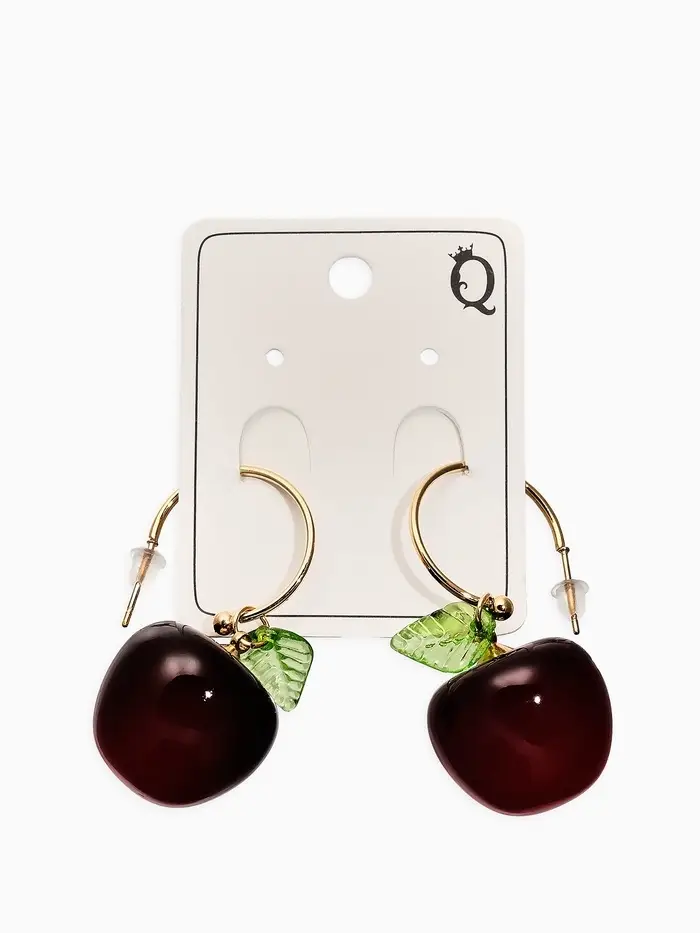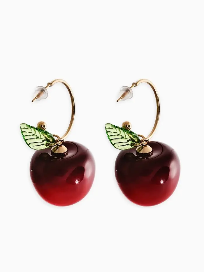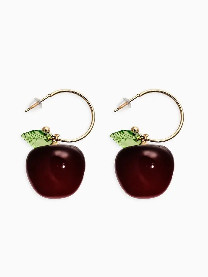 Серьги-кольца "Черешня с листочком", цвет бордовый в золоте