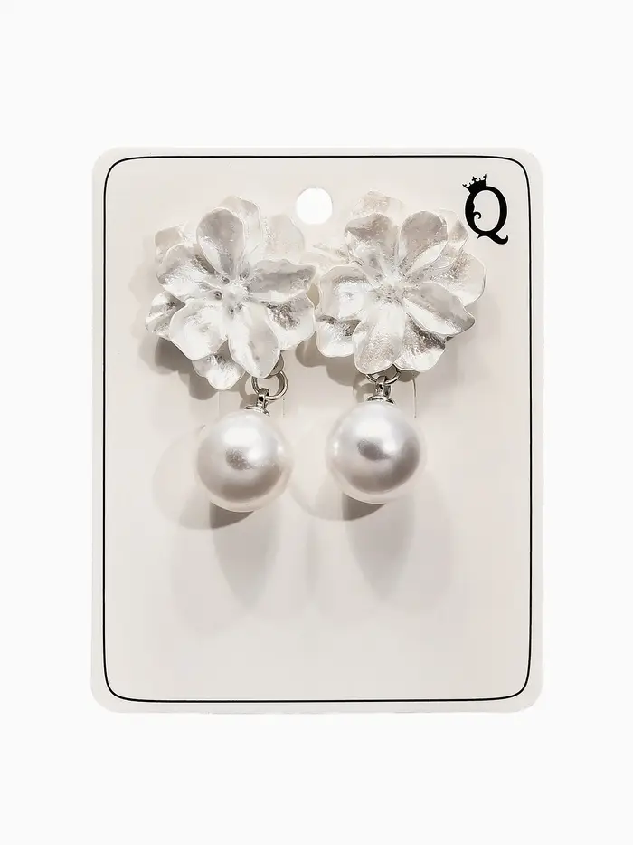 Серьги "Цветок с жемчугом", цвет белый в серебре