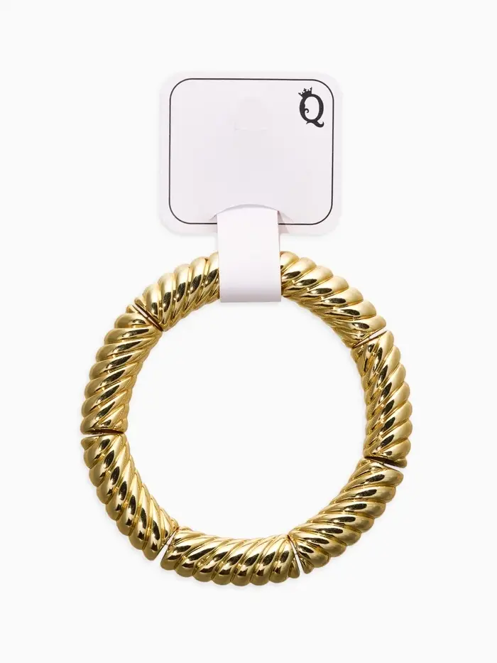 Браслет пластик на резинке "Стиль" резной, цвет золото