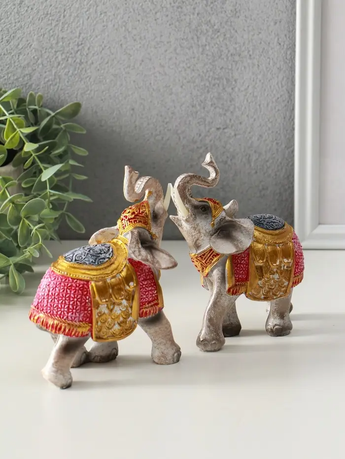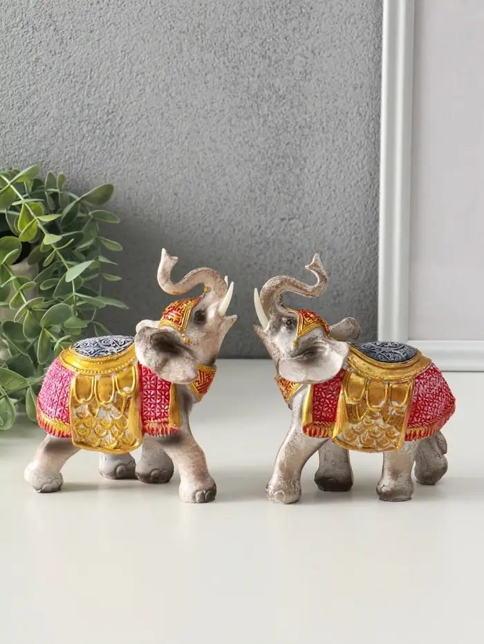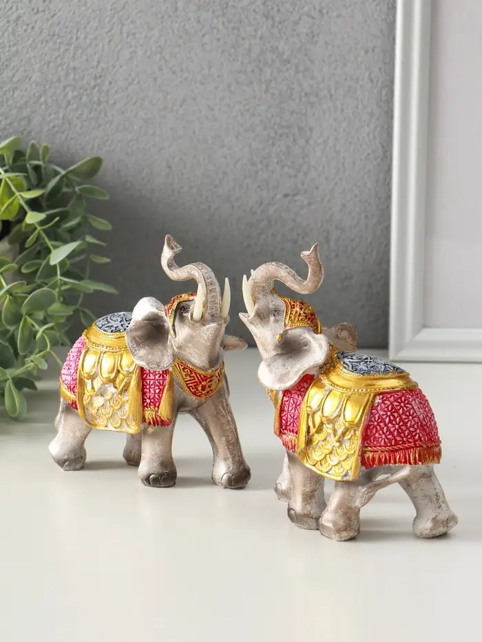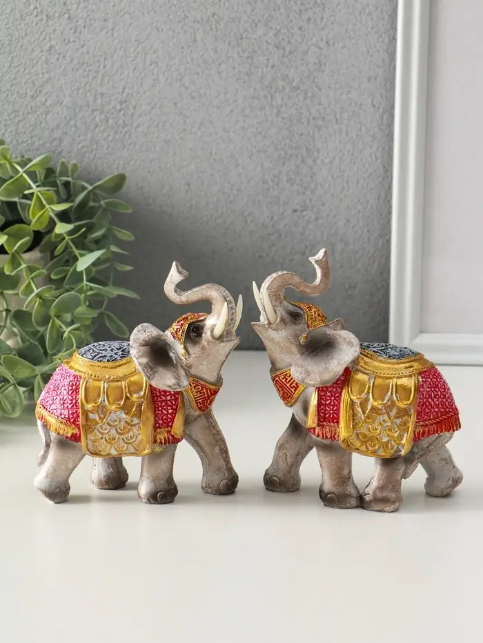 Сувенир полистоун "Два императорских слона в красно-золотой попоне" набор 2 шт 5х11,5х13 см 109152