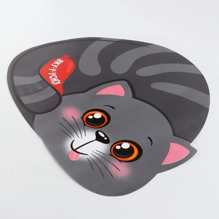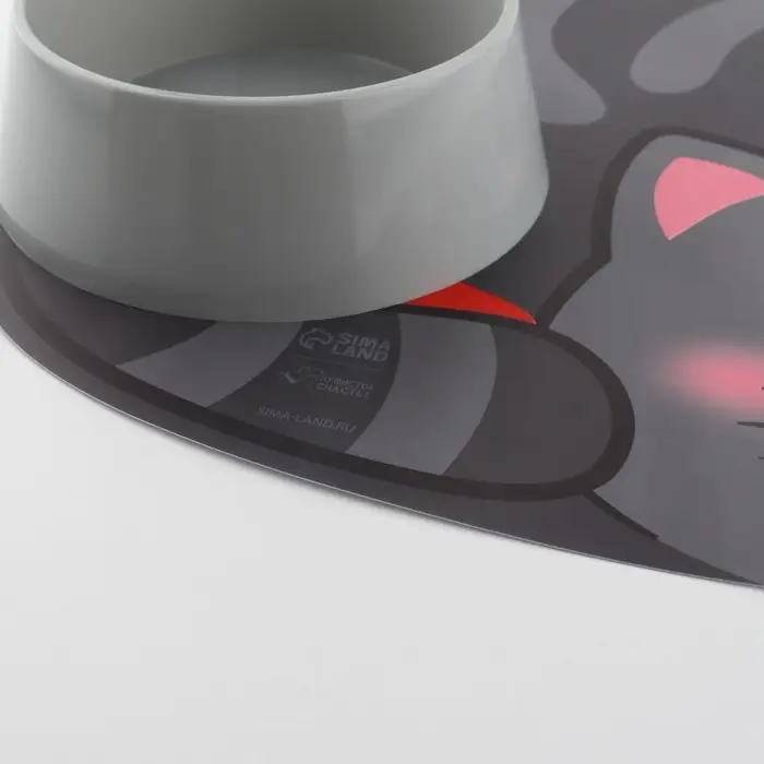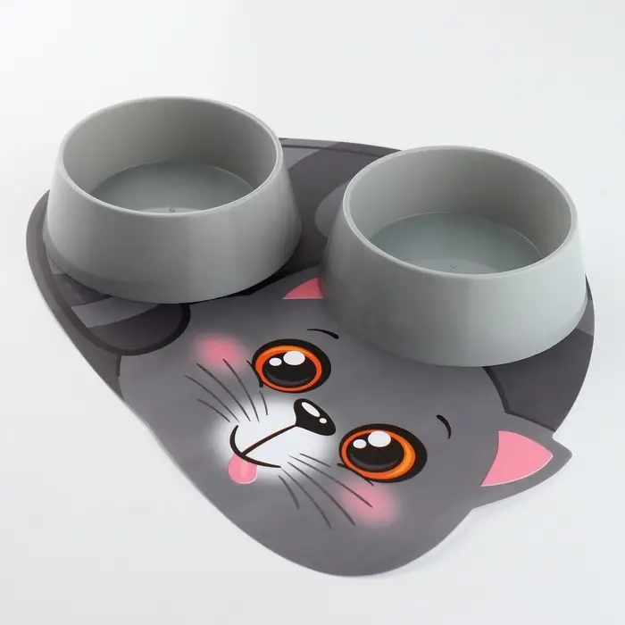 Набор коврик под миску "Вку-у-усно!" + 2 миски пластиковые серые