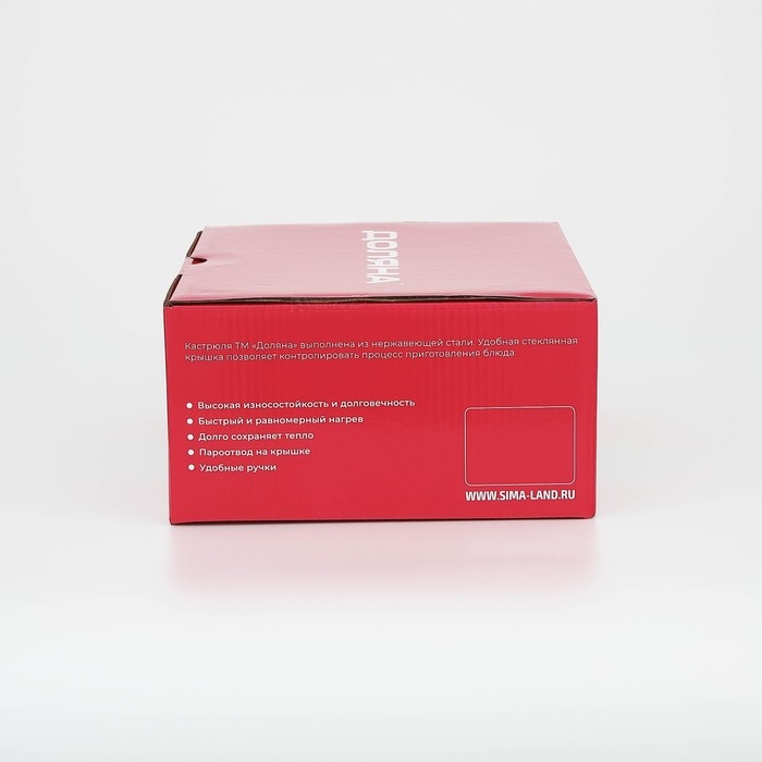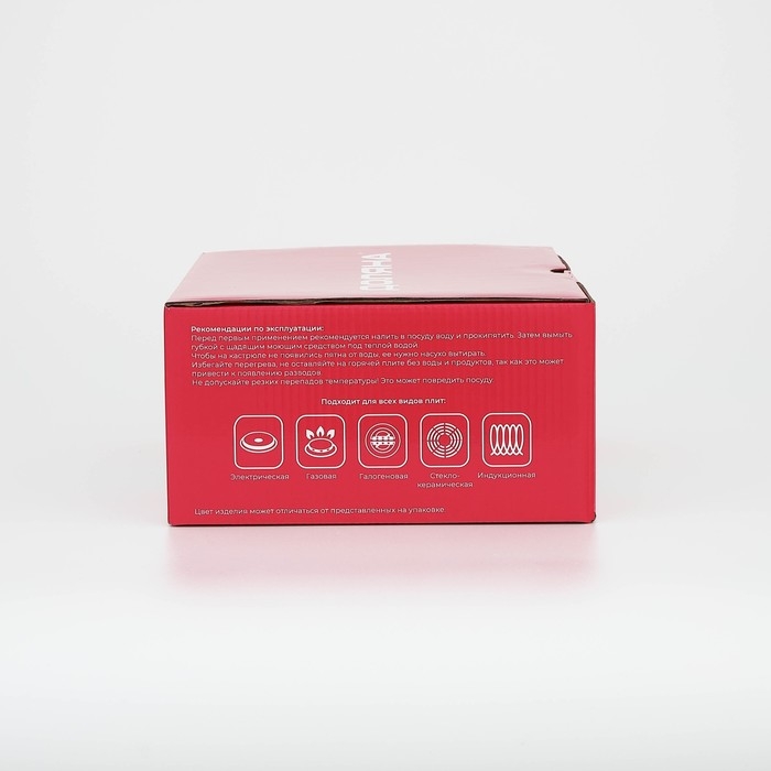 Кастрюля выполнена из нержавеющей стали марки AISI 201. Металл быстро проводит тепло и противостоит коррозии. Благодаря капсулированному дну посуду можно использовать на индукционной плите.