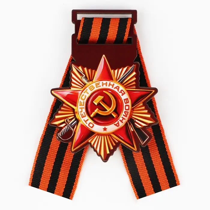 Значок деревянный с георгиевской лентой на 9 мая «Орден», 4.5×6.3 см