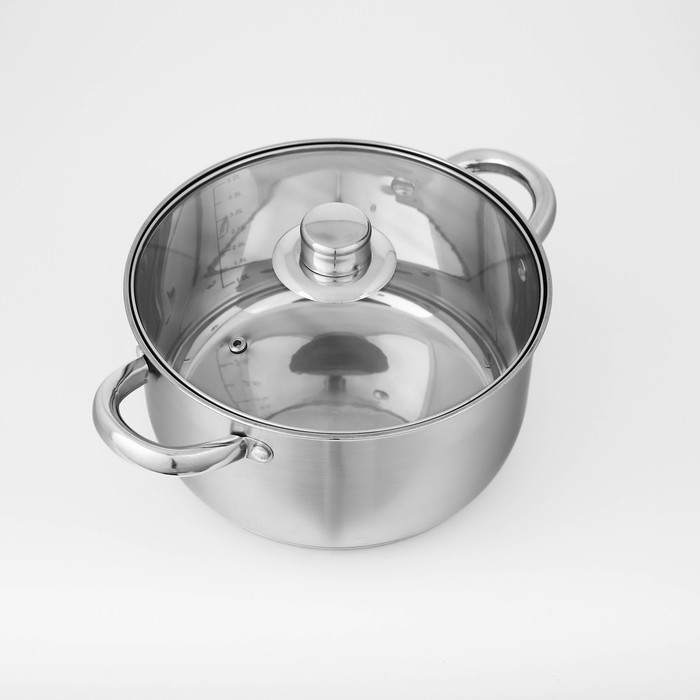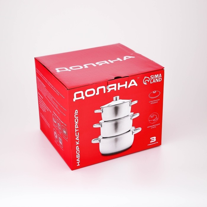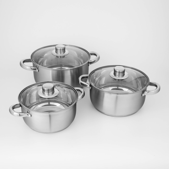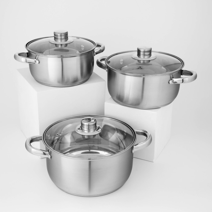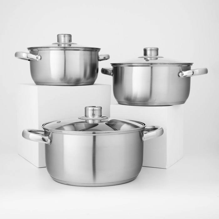 Набор кастрюль из нержавеющей стали Доляна «Гретте», 3 предмета: 2,3 л, 3,2 л, 4,2 л, крышки