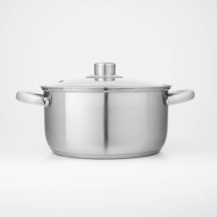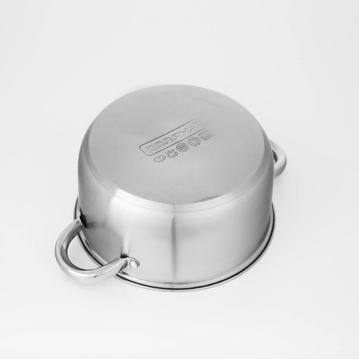 Кастрюли выполнены из нержавеющей стали марки AISI 201. Металл быстро проводит тепло и противостоит коррозии. Благодаря капсулированному дну посуду можно использовать на индукционной плите.
