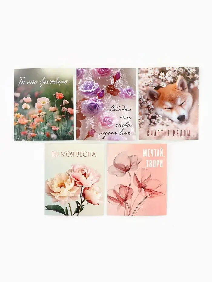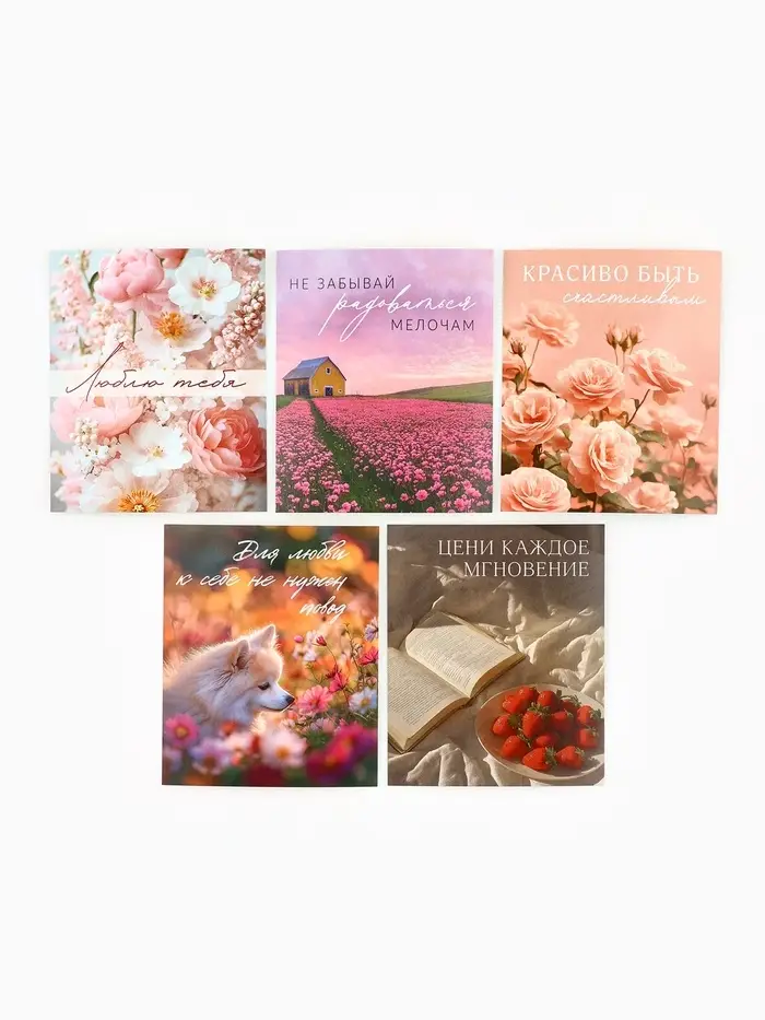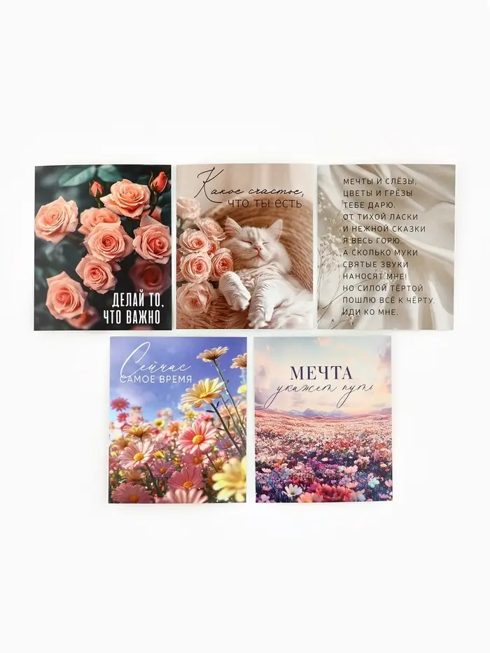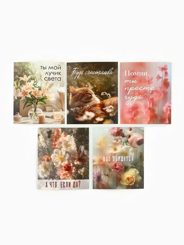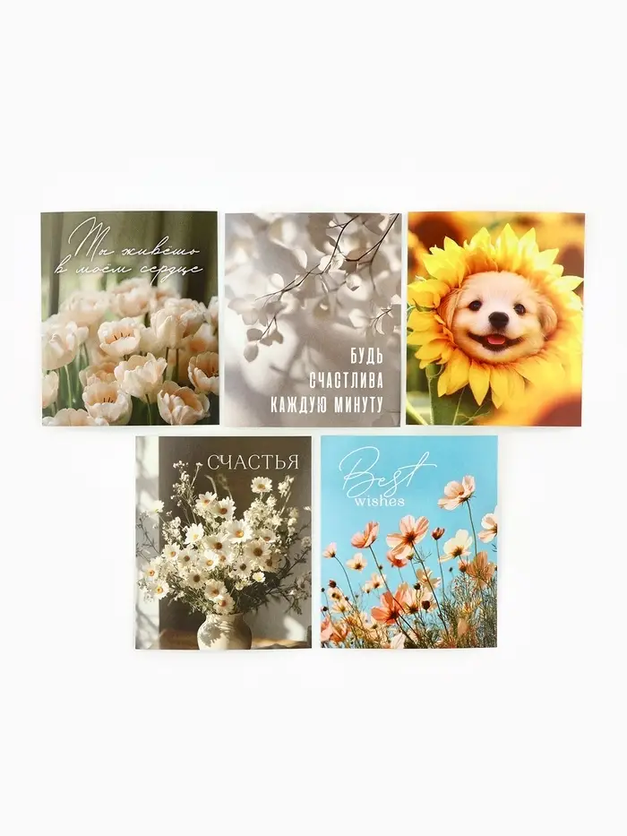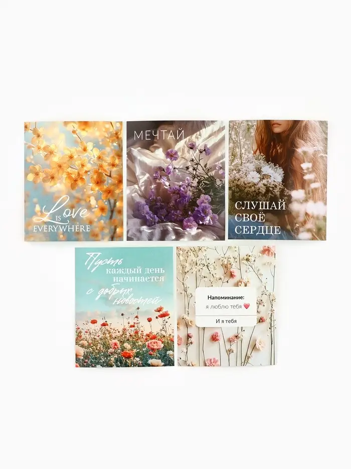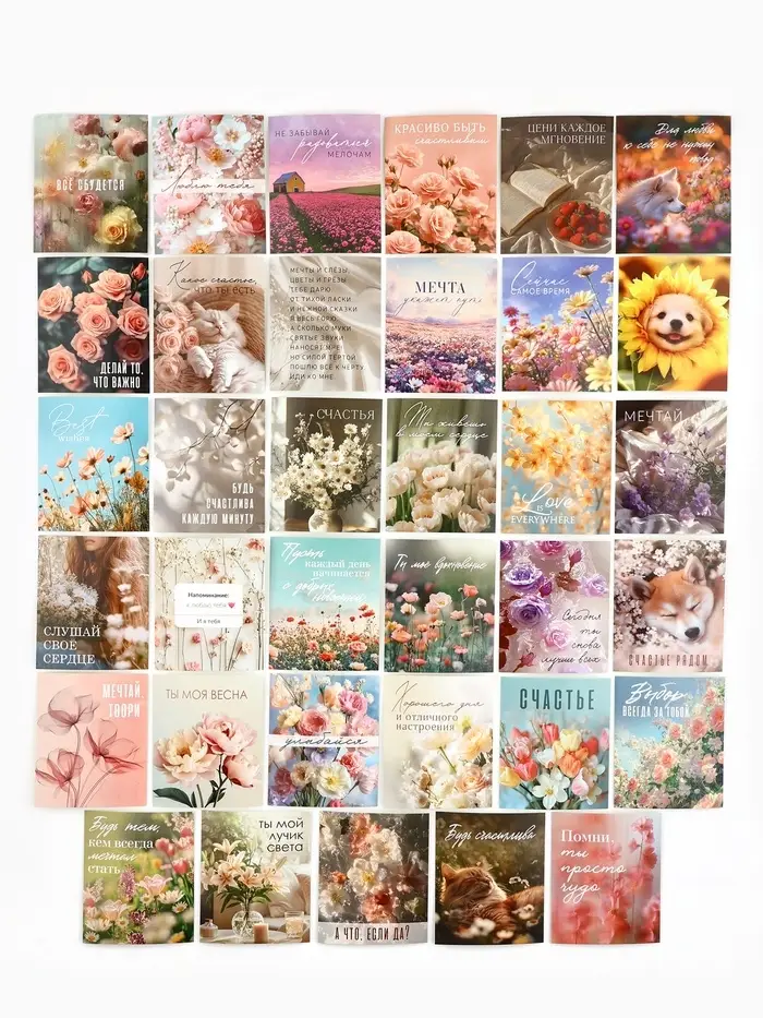 Набор мини-открыток в коробке со скрепками «Цветы», 35 штук, 8 x 10 см