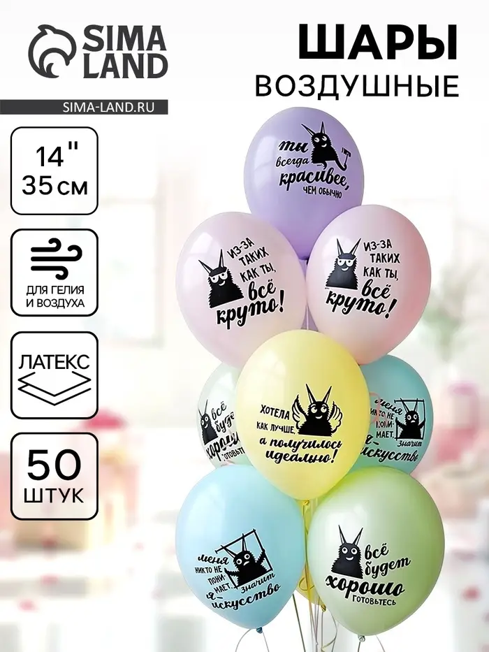 Воздушный шар латексный 14" «Козаяц - Все круто!», 50 шт.