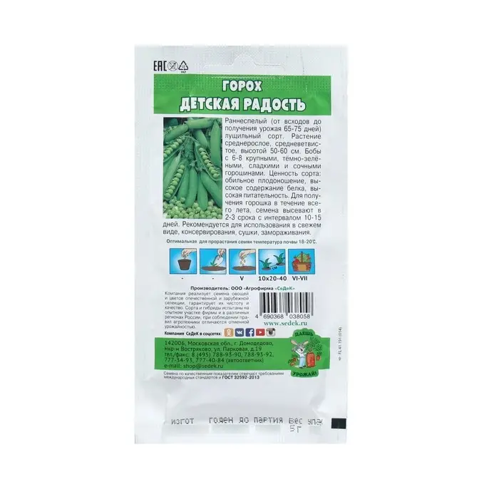 Семена Горох сахарный "Детский", 5 г