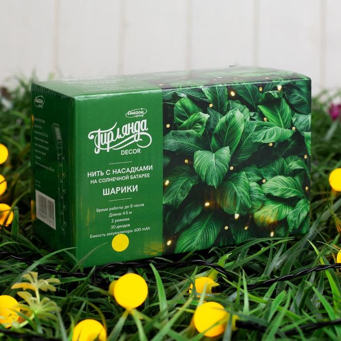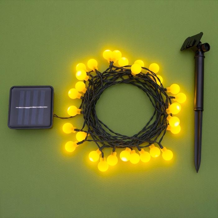 Гирлянда «Нить» 4.5 м с насадками «Шарики», IP44, тёмная нить, 30 LED, свечение жёлтое, 2 режима, солнечная батарея