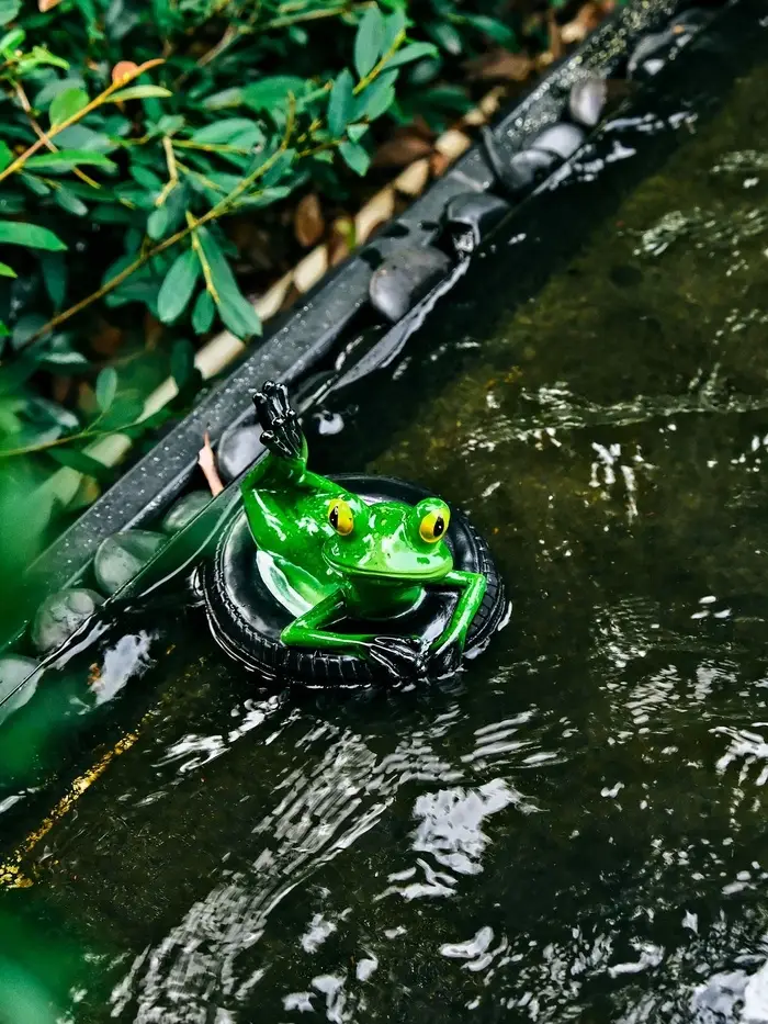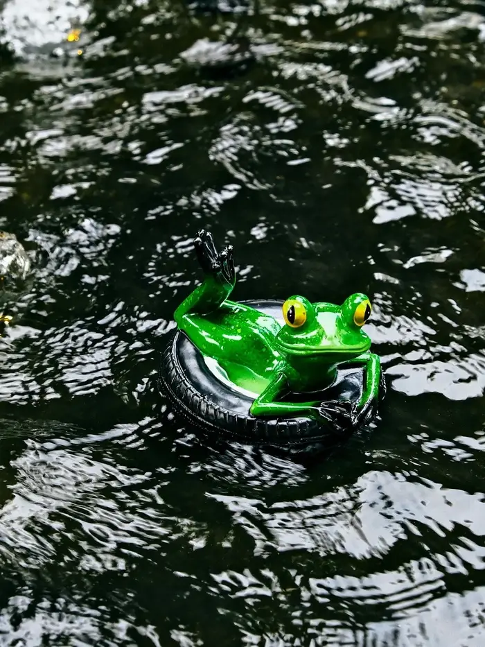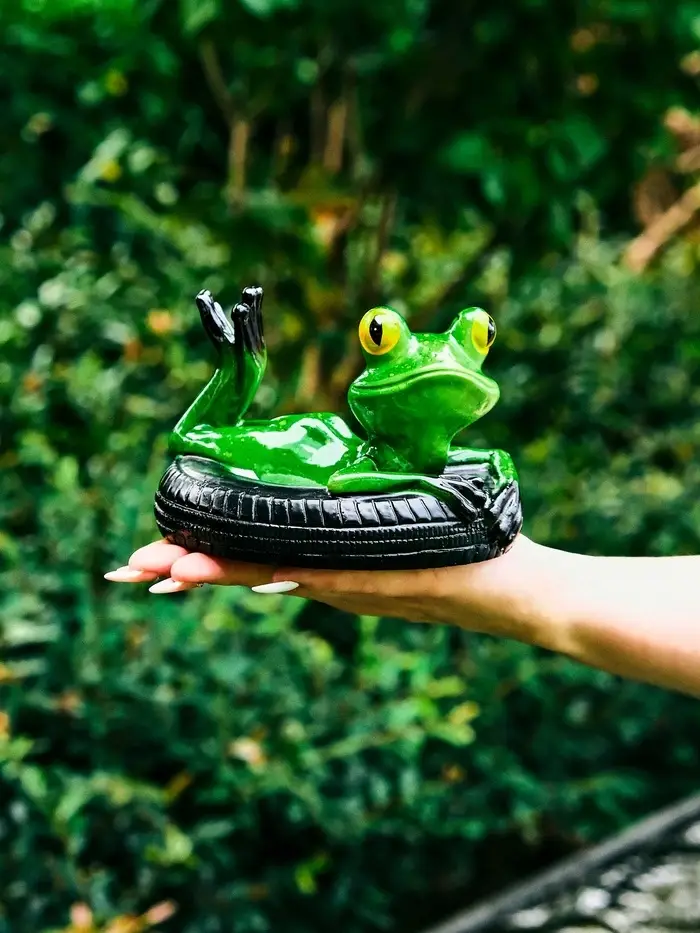 Садовая фигура 14 х 13 х 9,5 см "Лягушка на шине" Водоплавающая