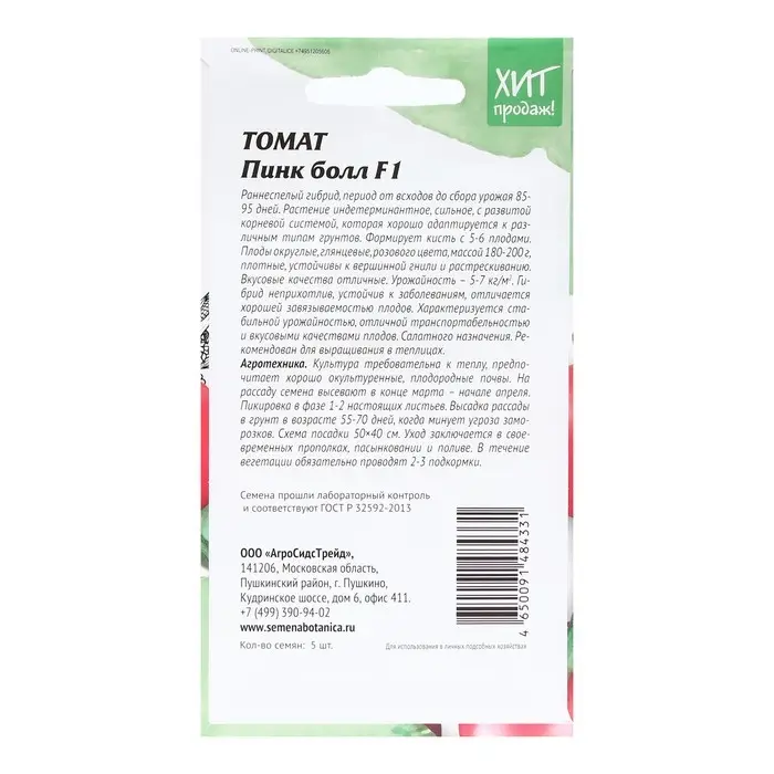 Семена Томат"Агрос Розелла"F1 5шт* Селекция Агрос