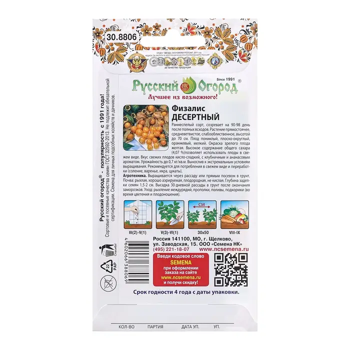 Семена Физалис "Сливовый джем", серия Русский огород, 30 шт
