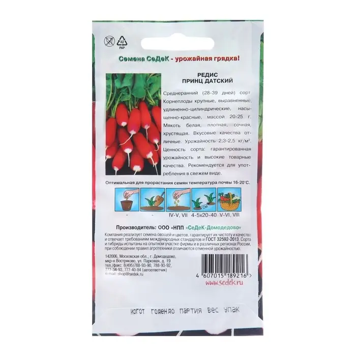 Семена Редис "Розово-красный с белым кончиком", 2 г
