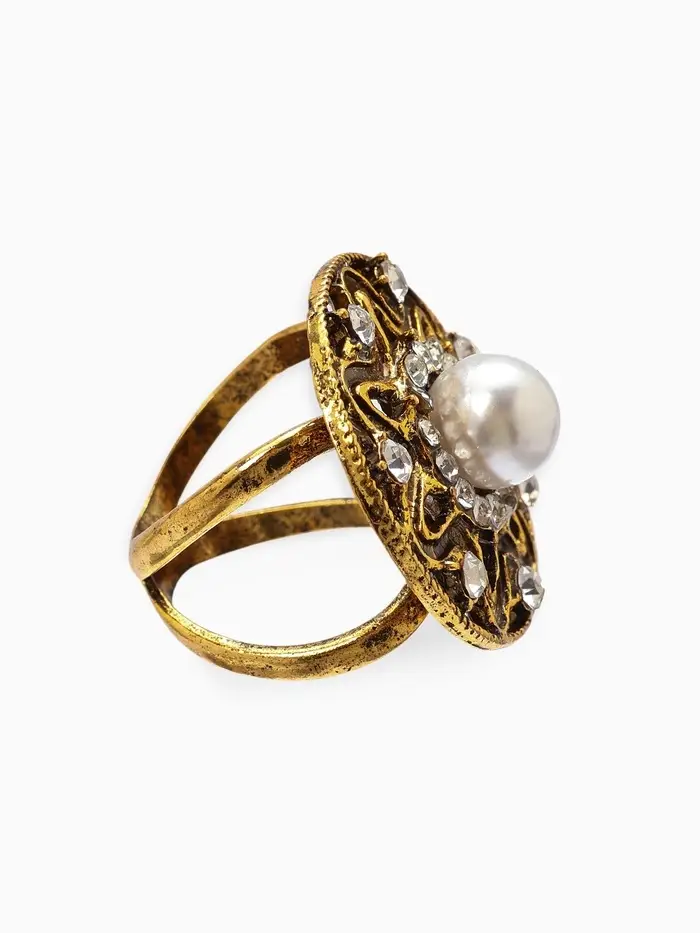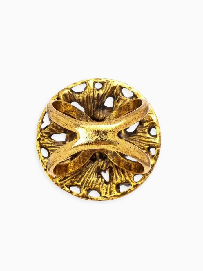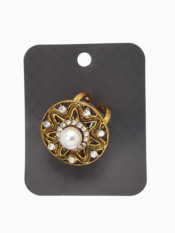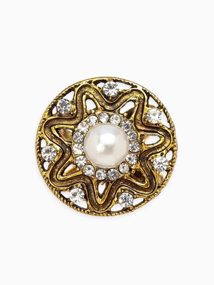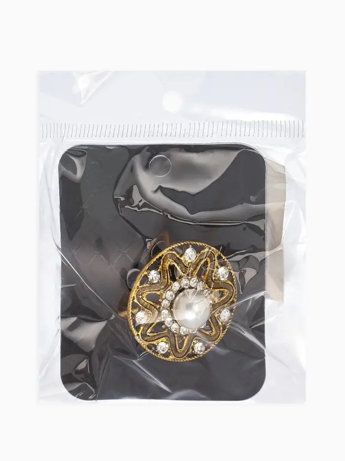 Кольцо для платка "Цветок в круге", цвет белый в чернёном золоте