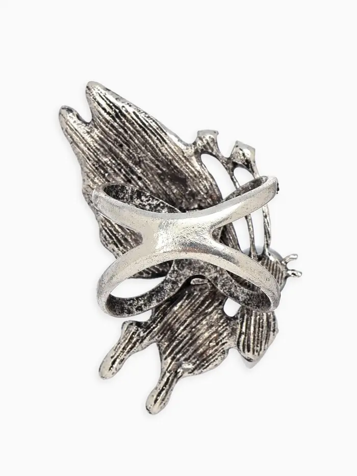 Кольцо для платка "Бабочка профиль", цвет белый в чернёном серебре