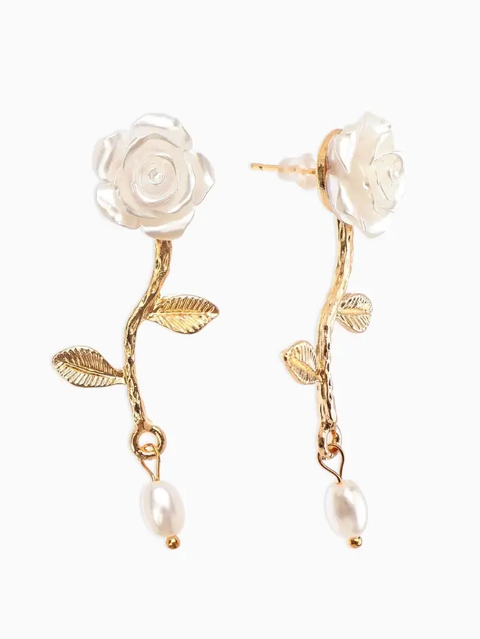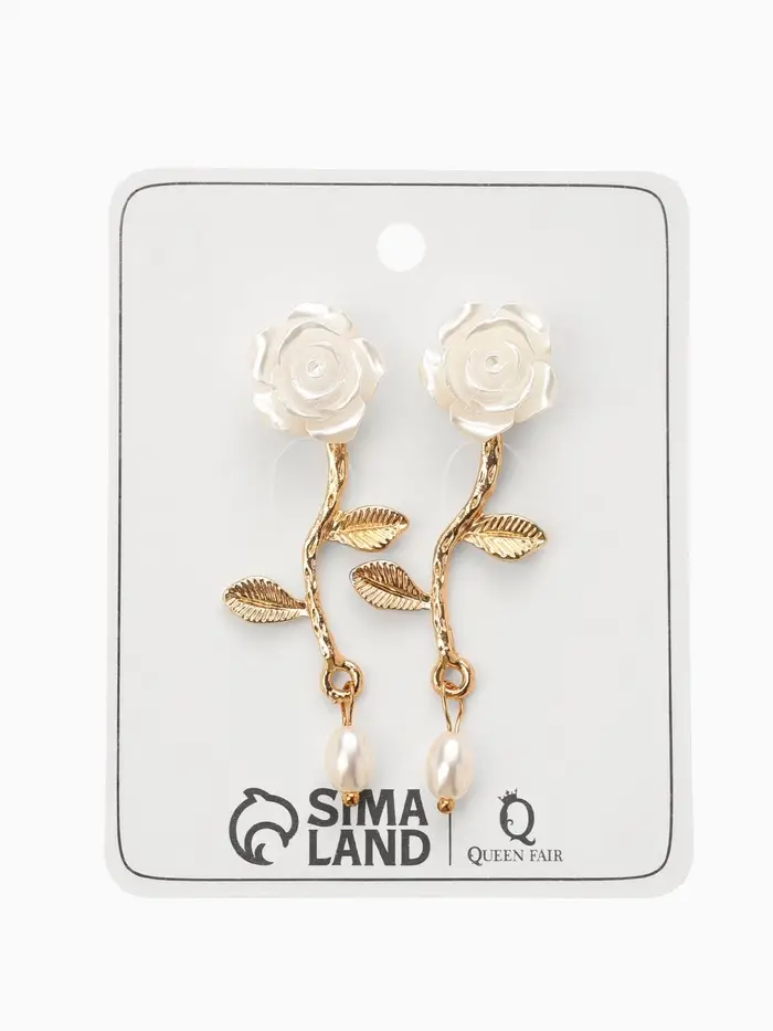 Серьги "Цветок розы", цвет белый в золоте