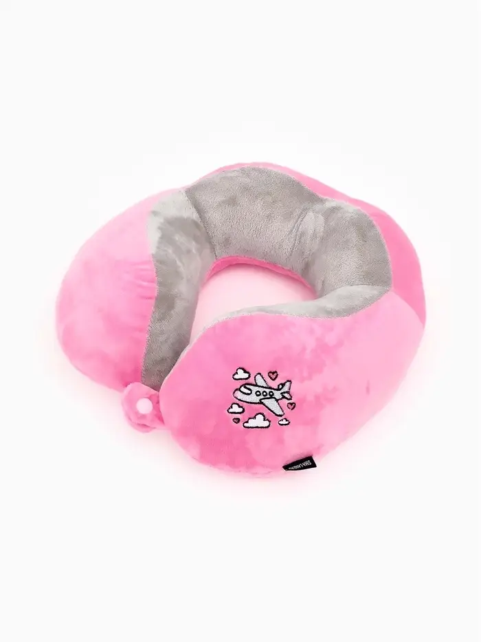 Подушка для путешествий бархатная формовая "Самолет", розовая
