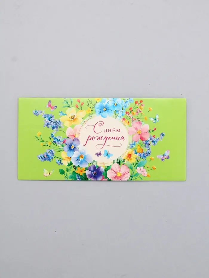 Конверт для денег «С днём рождения», на лаймовом, 16,5 х 8 см