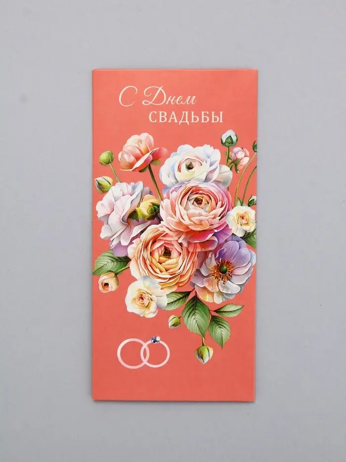 Конверт для денег «С Днем Свадьбы», кольца на розовом, 16,5 х 8 см