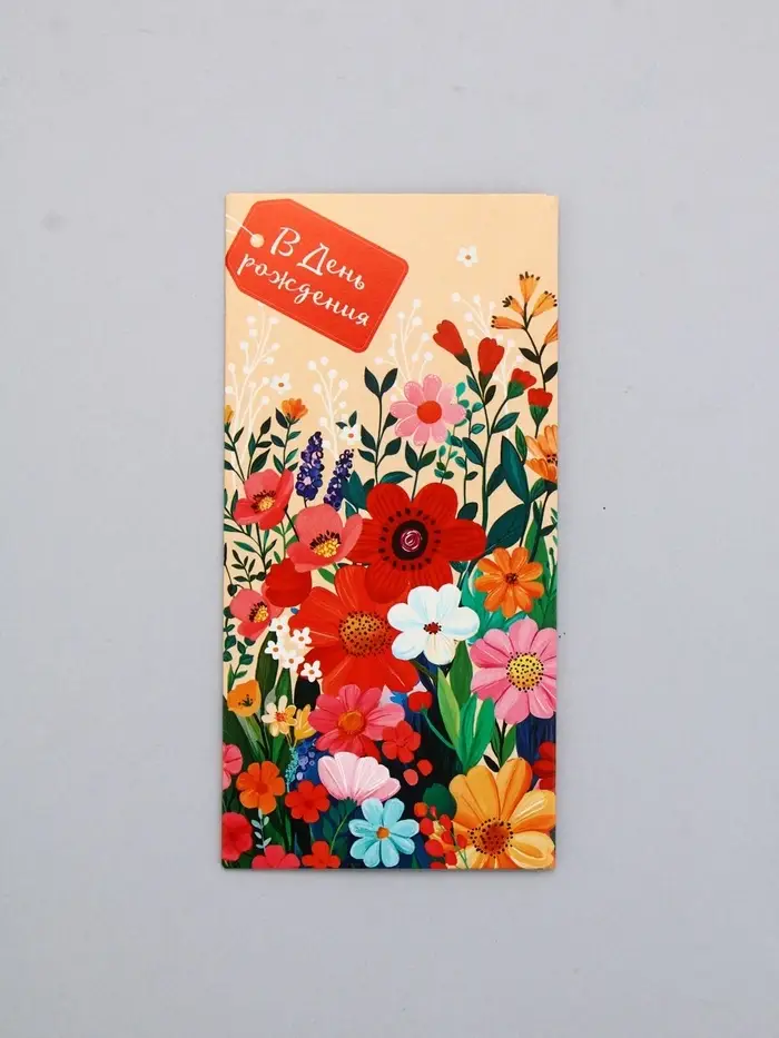 Конверт для денег «В День Рождения!», яркие цветы на светлом, 16,5 х 8 см