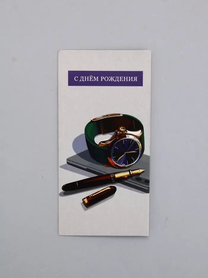 Конверт для денег «С Днем Рождения», часы, 16,5 х 8 см