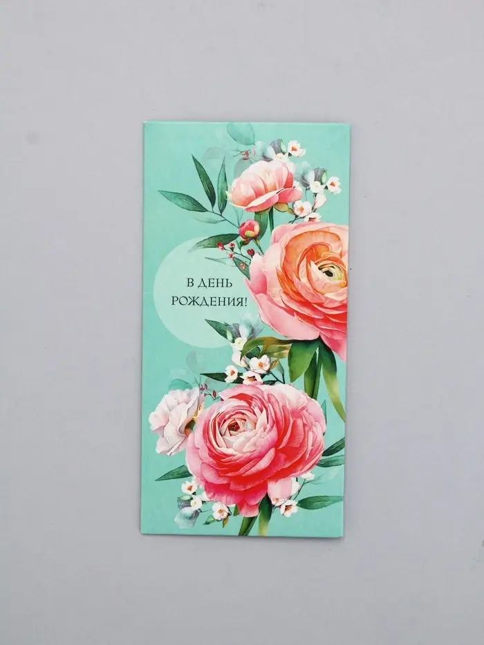 Конверт для денег «В День Рождения!», бирюзовый, 16,5 х 8 см
