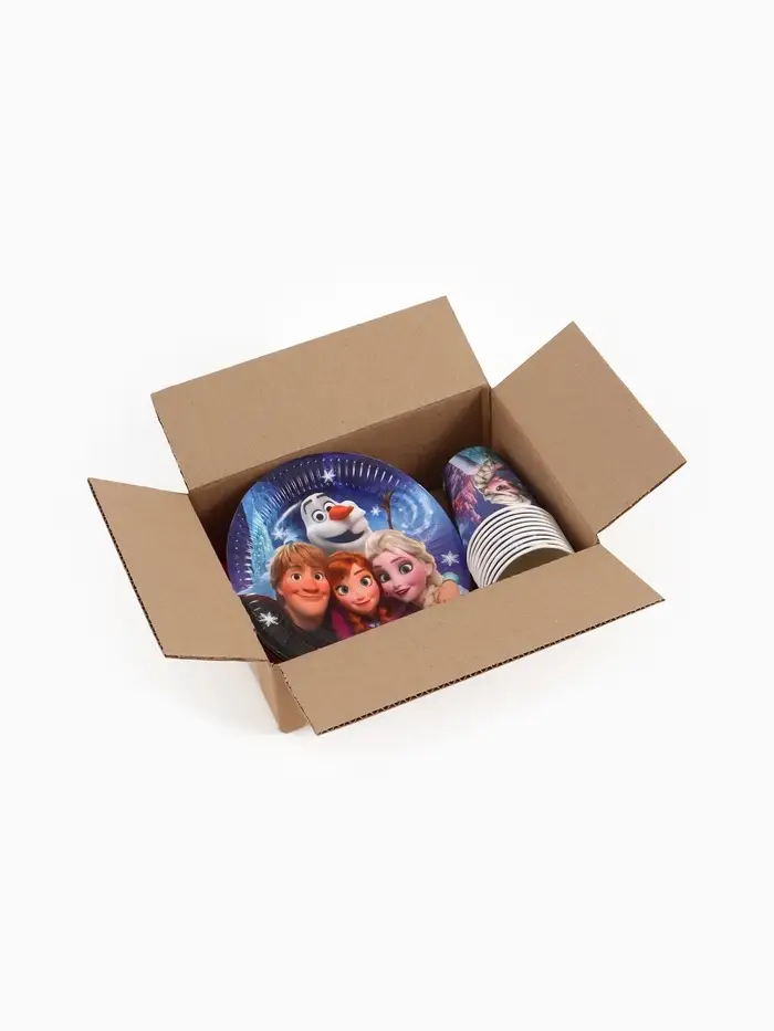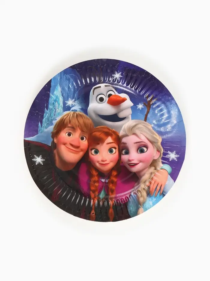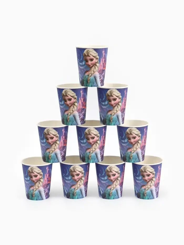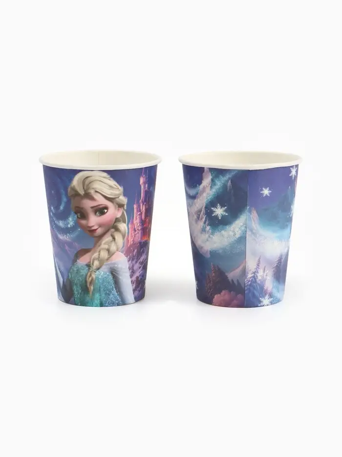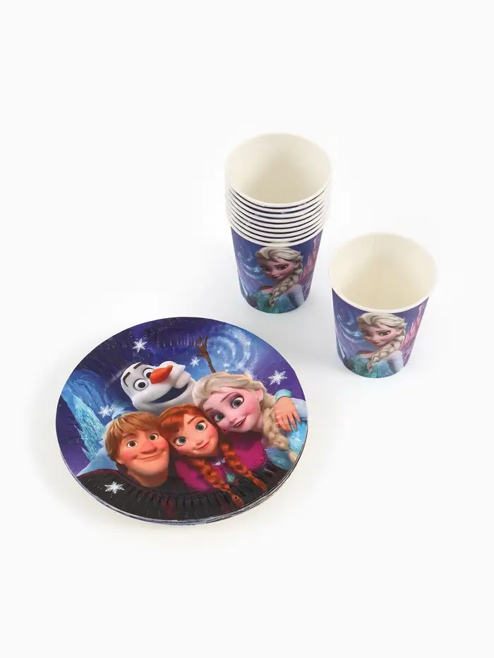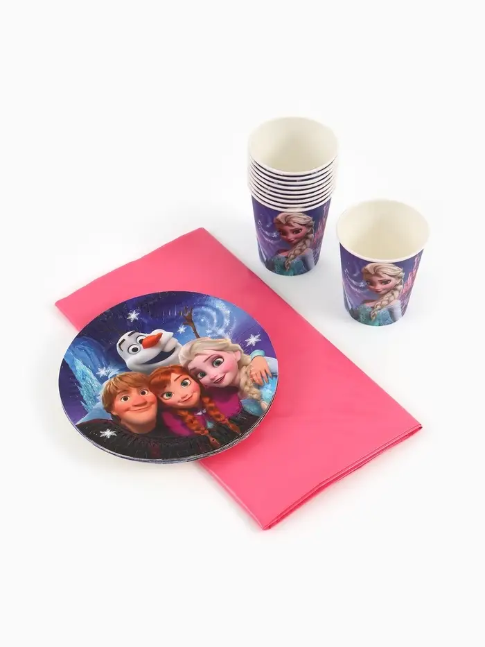 Посуда одноразовая бумажная на 10 персон: стаканы, тарелки, скатерть, Снежная принцесса